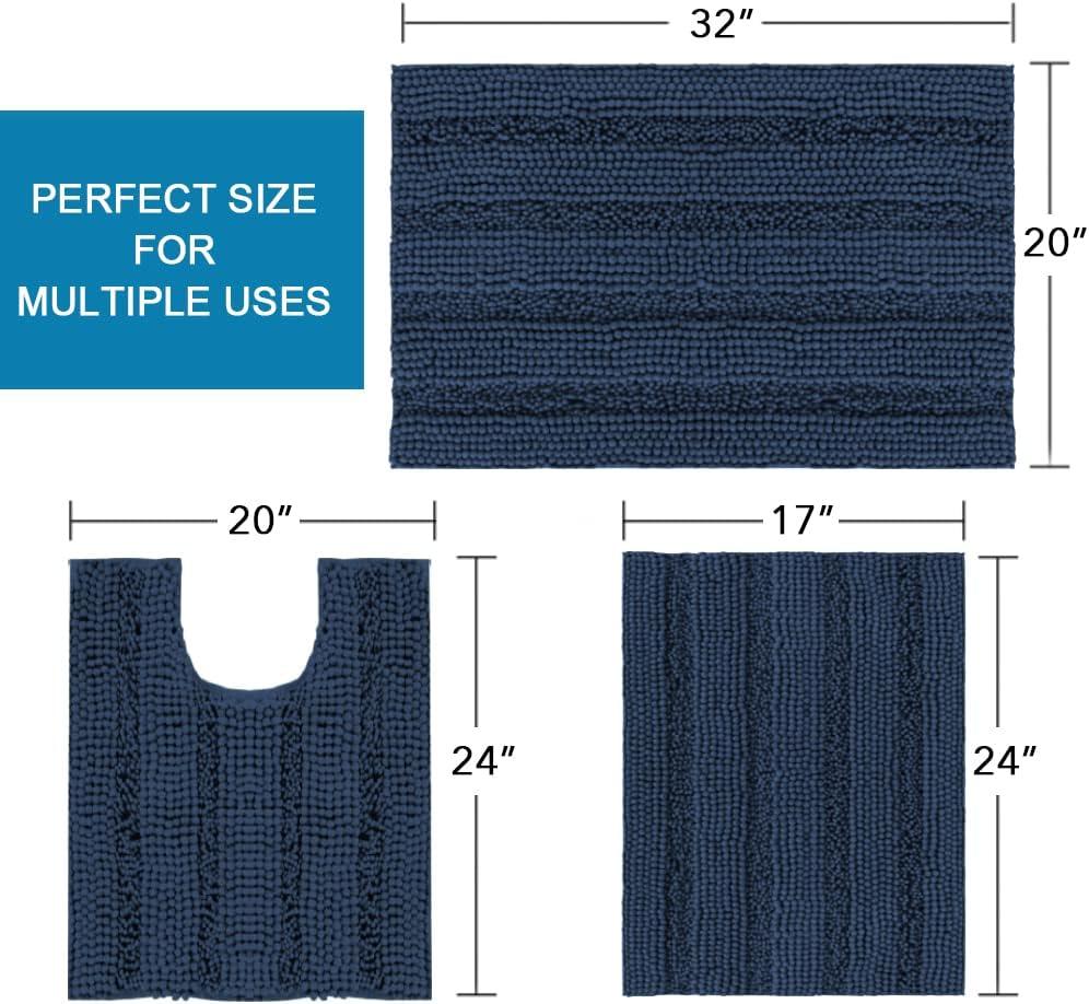 Be the first to review “H.VERSAILTEX 3 Piece Thick Striped Bath Rugs Set for Bathroom Non Slip Soft Absorbent Bath Mat for Tub, Shower and Toilet(17”x24”+20”x32”+20”x24” U-Shaped, Ivory)(Navy)”