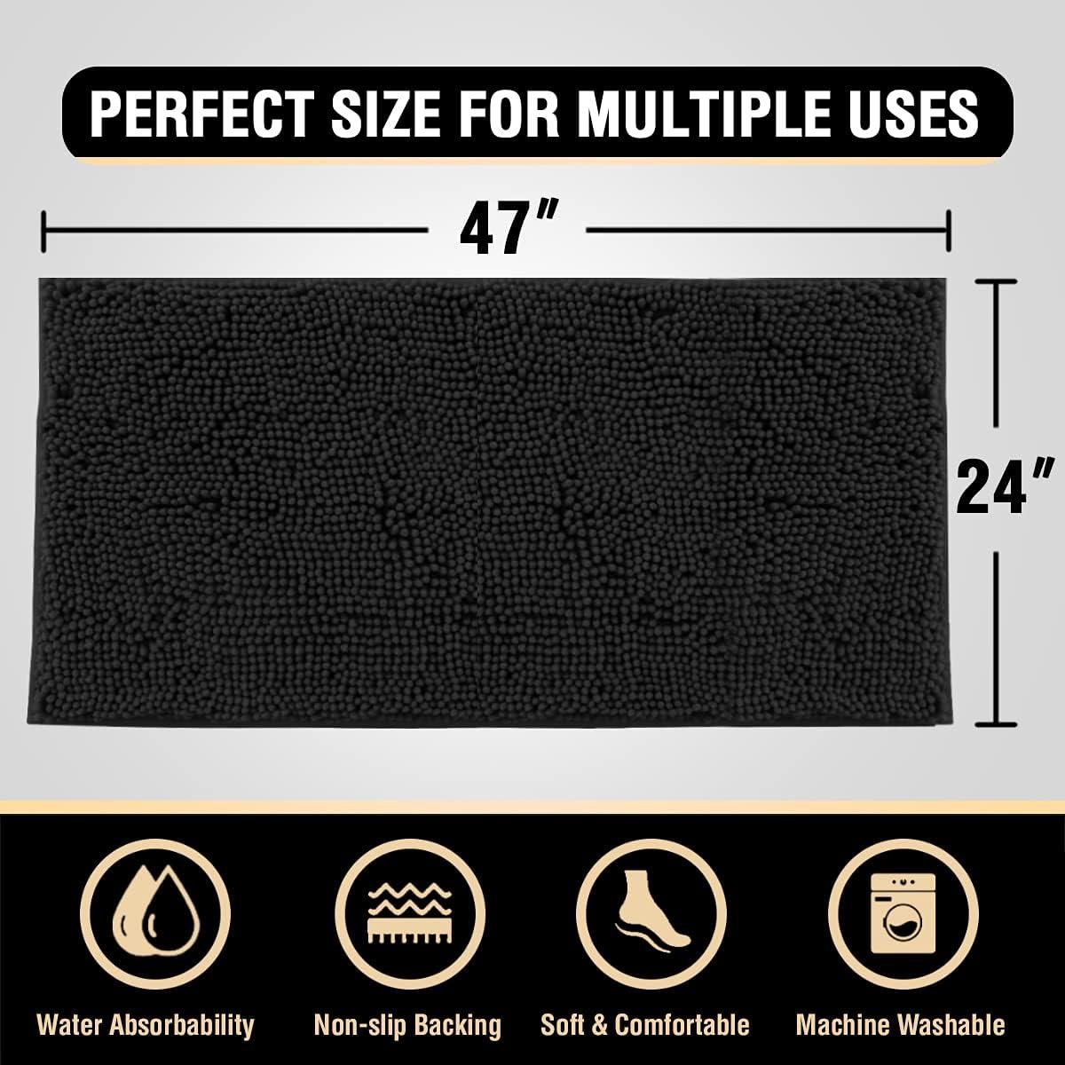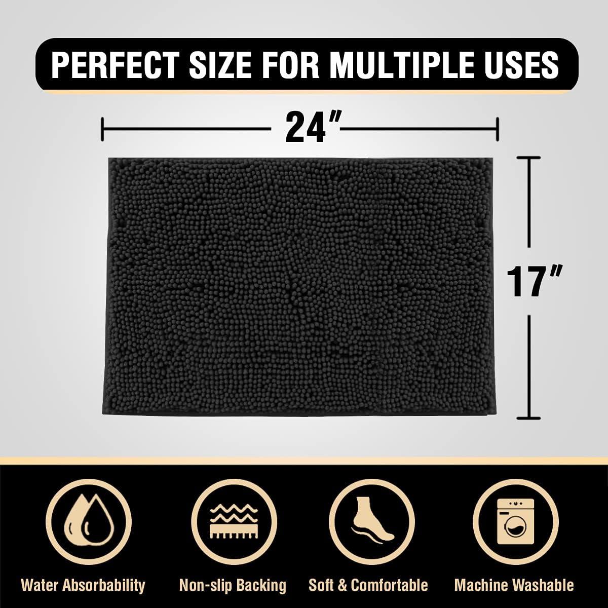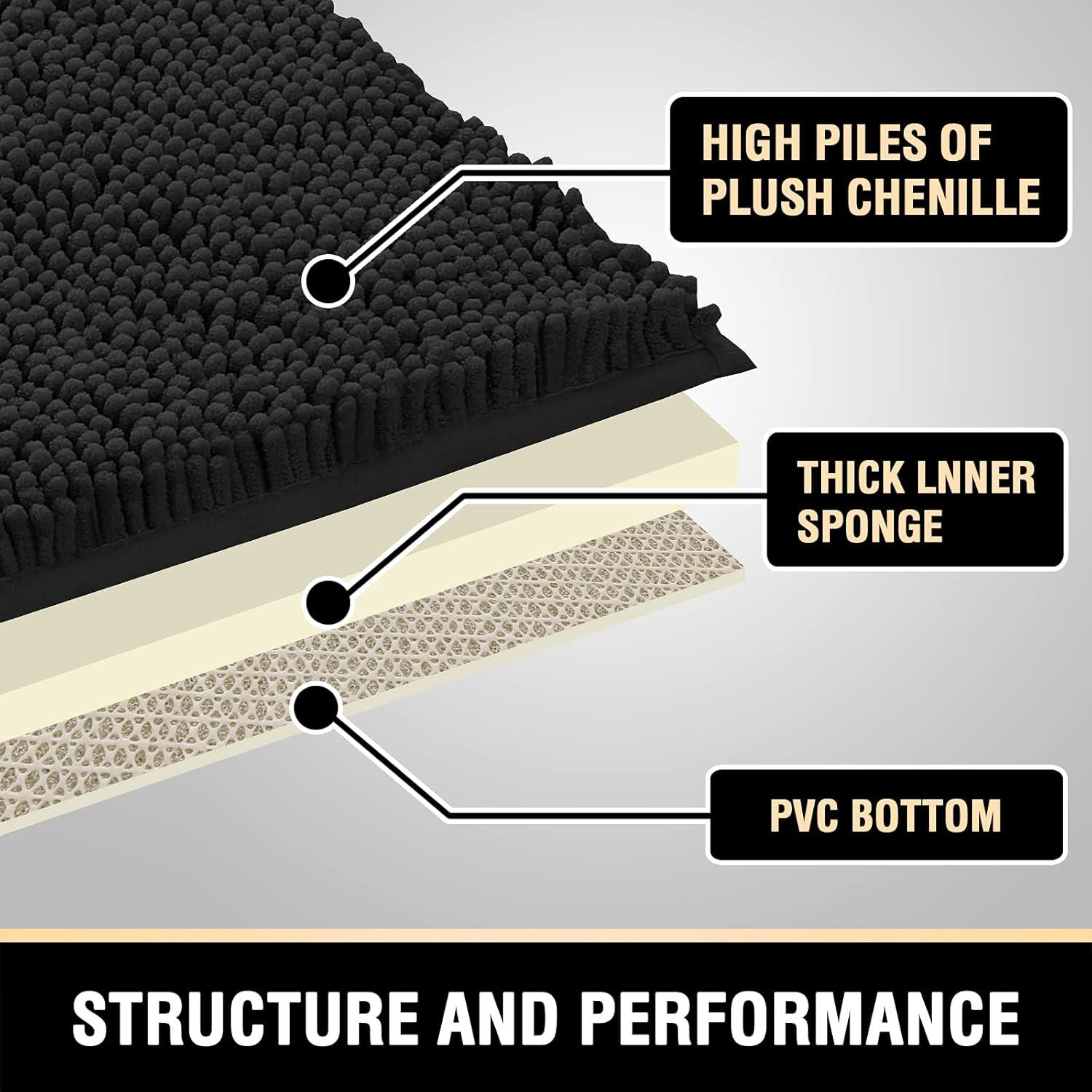 imageHVERSAILTEX Bath Mat Bath Rug for Bathroom Luxury Chenille Bathroom Rug Mat Extra Soft and Absorbent Microfiber Shaggy Rugs Non Slip Rug Quick Dry Bath Mat Washable 17 x 24 Inches NavyBlack