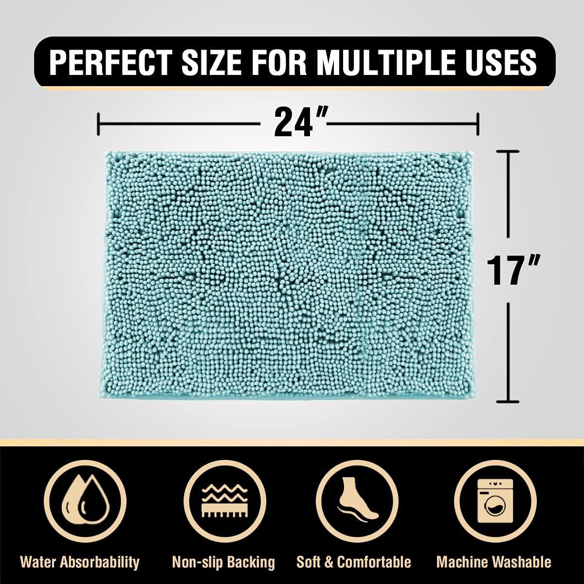 imageHVERSAILTEX Bath Mat Bath Rug for Bathroom Luxury Chenille Bathroom Rug Mat Extra Soft and Absorbent Microfiber Shaggy Rugs Non Slip Rug Quick Dry Bath Mat Washable 17 x 24 Inches NavyCanal Blue
