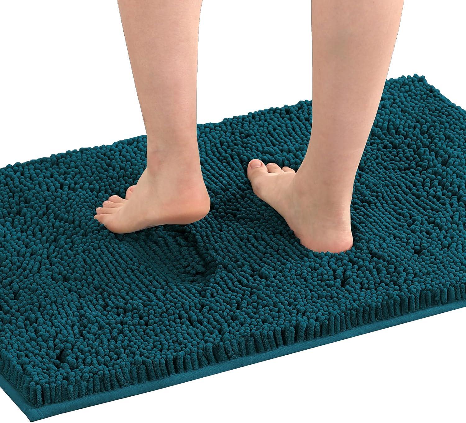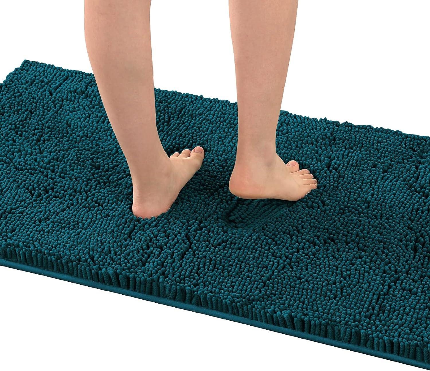 H.VERSAILTEX Bath Mat Bath Rug for Bathroom Luxury Chenille Bathroom Rug Mat Extra Soft and Absorbent Microfiber Shaggy Rugs Non Slip Rug Quick Dry Bath Mat Washable, 17 x 24 Inches, Navy(Dark Teal)