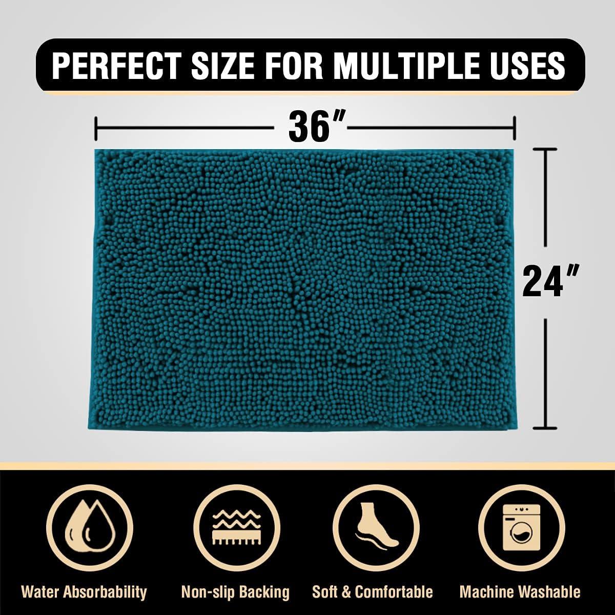 imageHVERSAILTEX Bath Mat Bath Rug for Bathroom Luxury Chenille Bathroom Rug Mat Extra Soft and Absorbent Microfiber Shaggy Rugs Non Slip Rug Quick Dry Bath Mat Washable 17 x 24 Inches NavyDark Teal