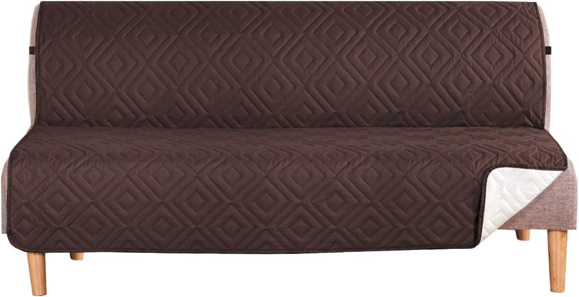 H.VERSAILTEX Futon Cover Reversible Sofa Slipcover Furniture Protector Water Resistant 2 Inch Wide Elastic Straps Sofa Bed Pets Kids Dog Cat Fit Sitting Width Up to 70″(Futon, Black/Grey)(Brown/Beige)