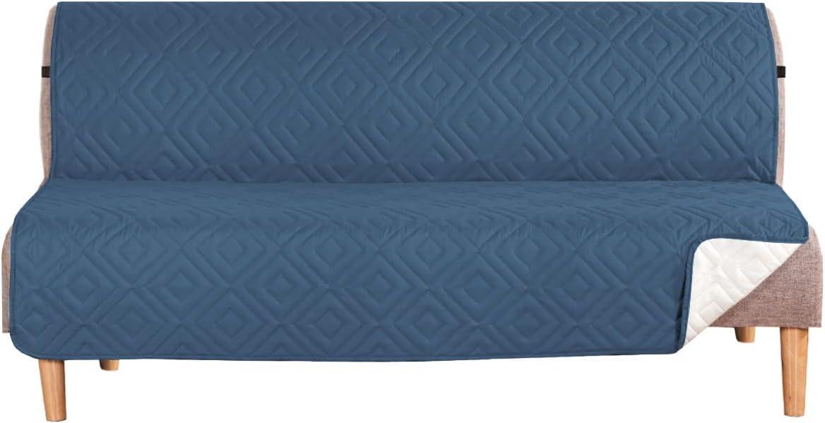 H.VERSAILTEX Futon Cover Reversible Sofa Slipcover Furniture Protector Water Resistant 2 Inch Wide Elastic Straps Sofa Bed Pets Kids Dog Cat Fit Sitting Width Up to 70"(Futon, Black/Grey)(Dark Blue/Beige)