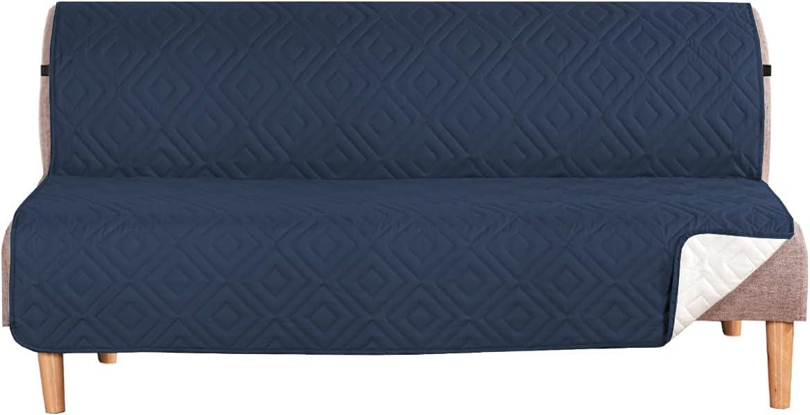H.VERSAILTEX Futon Cover Reversible Sofa Slipcover Furniture Protector Water Resistant 2 Inch Wide Elastic Straps Sofa Bed Pets Kids Dog Cat Fit Sitting Width Up to 70"(Futon, Black/Grey)(Navy/Beige)