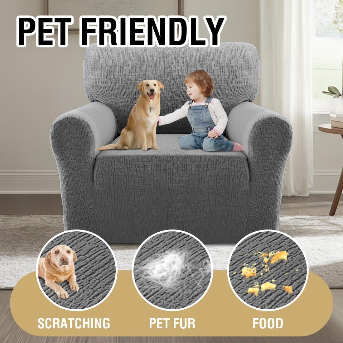 PRECISION FIT FOR 68″-80″ Sofas: Engineered with stretchable fabric for a seamless, wrinkle-free finish. Detailed sizing diagrams guide you to the perfect match – measure your seat width thoroughly before ordering. The wraparound elastic base provides full-edge protection against crumbs, scratches, and wear, ensuring your sofa stays pristine even with active households.