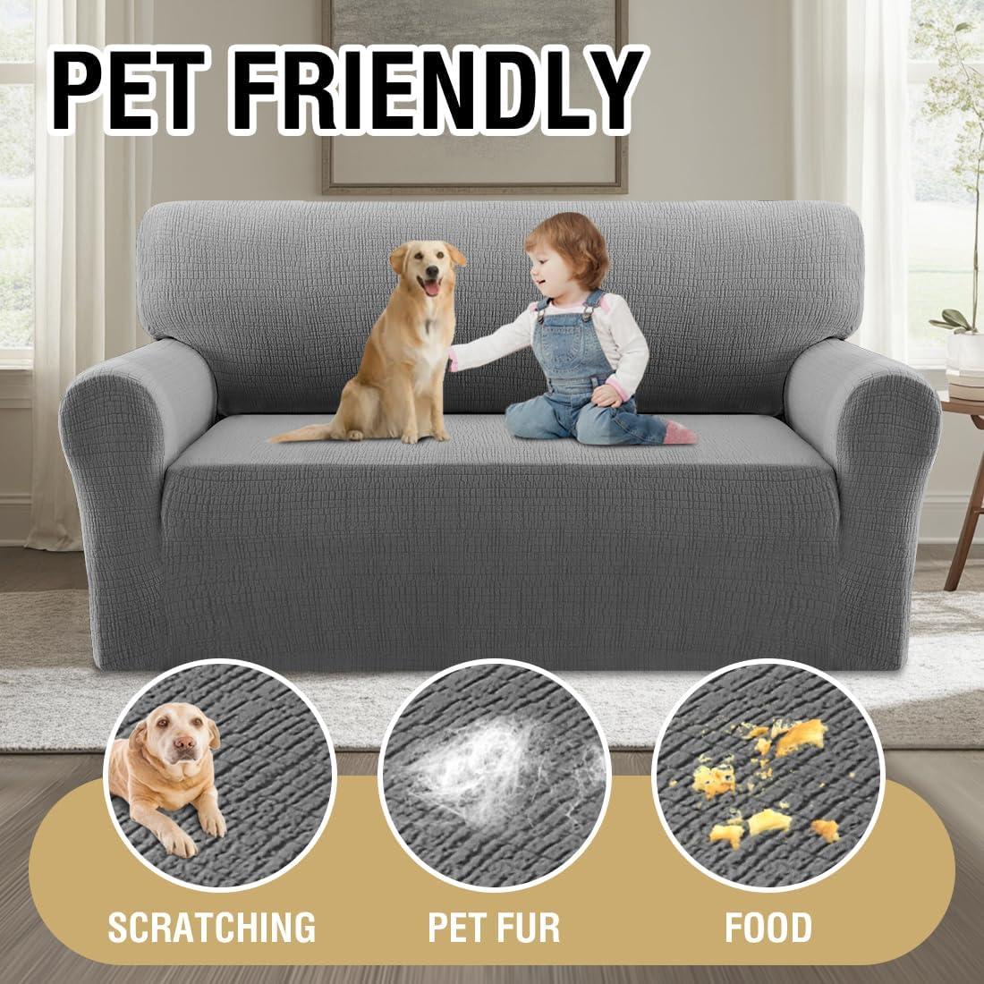 H.VERSAILTEX Jacquard Sofa Slipcover with Waterproof Seat Furniture Protector 1 Piece Stretch Sofa Covers with Elastic Bottom for Kids, Pets, Dog(Sofa, Ivory)(Grey)