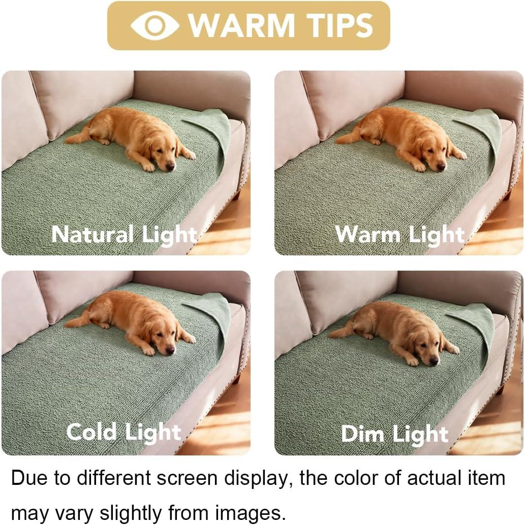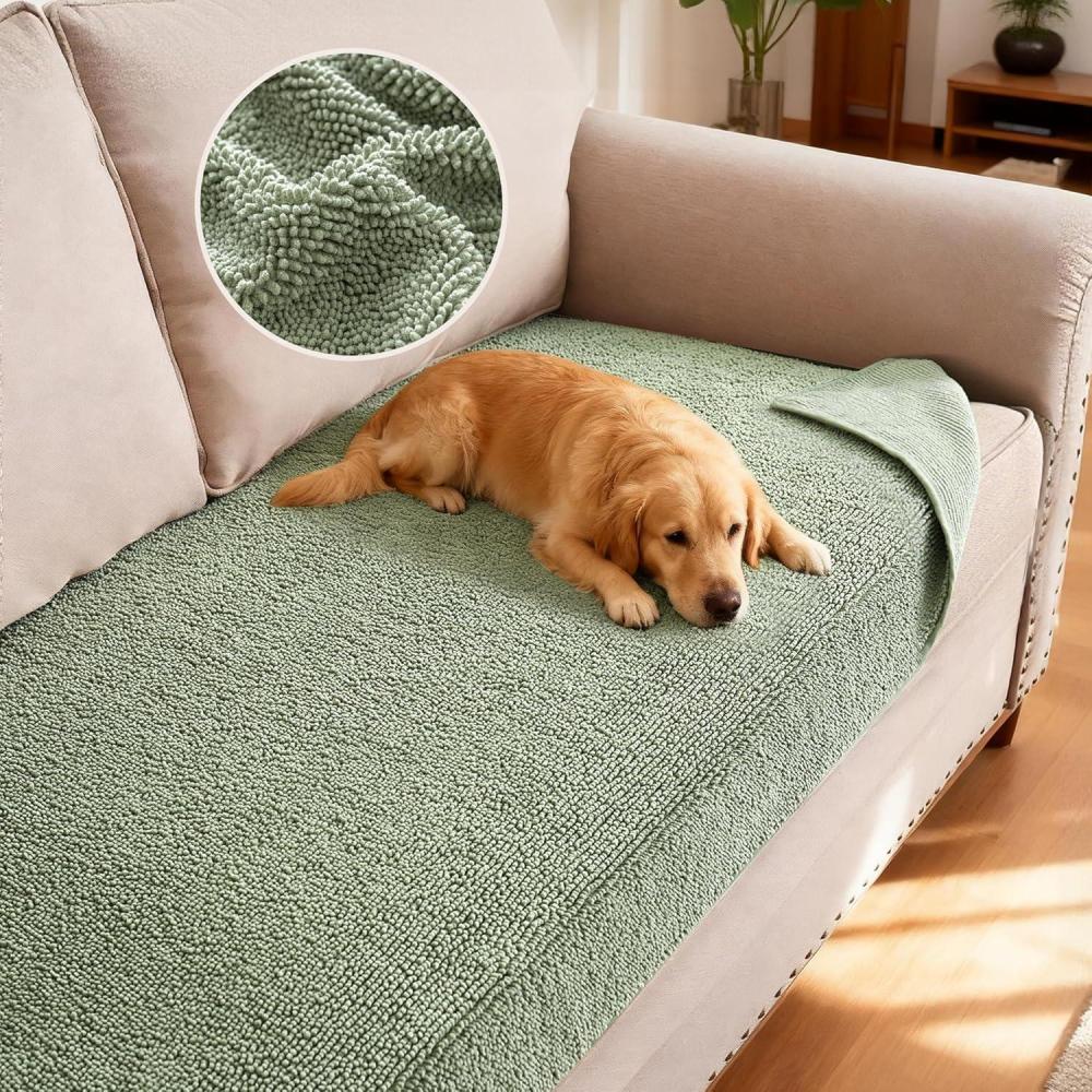 H.VERSAILTEX Non Slip Pet Couch Cover Chenille Dog Bed Protector Thick Soft Sofa Slipcover Pet Friendly Washable Couch Cushion Covers for Pets (68″ x 82″, Taupe)(Sea Foam)