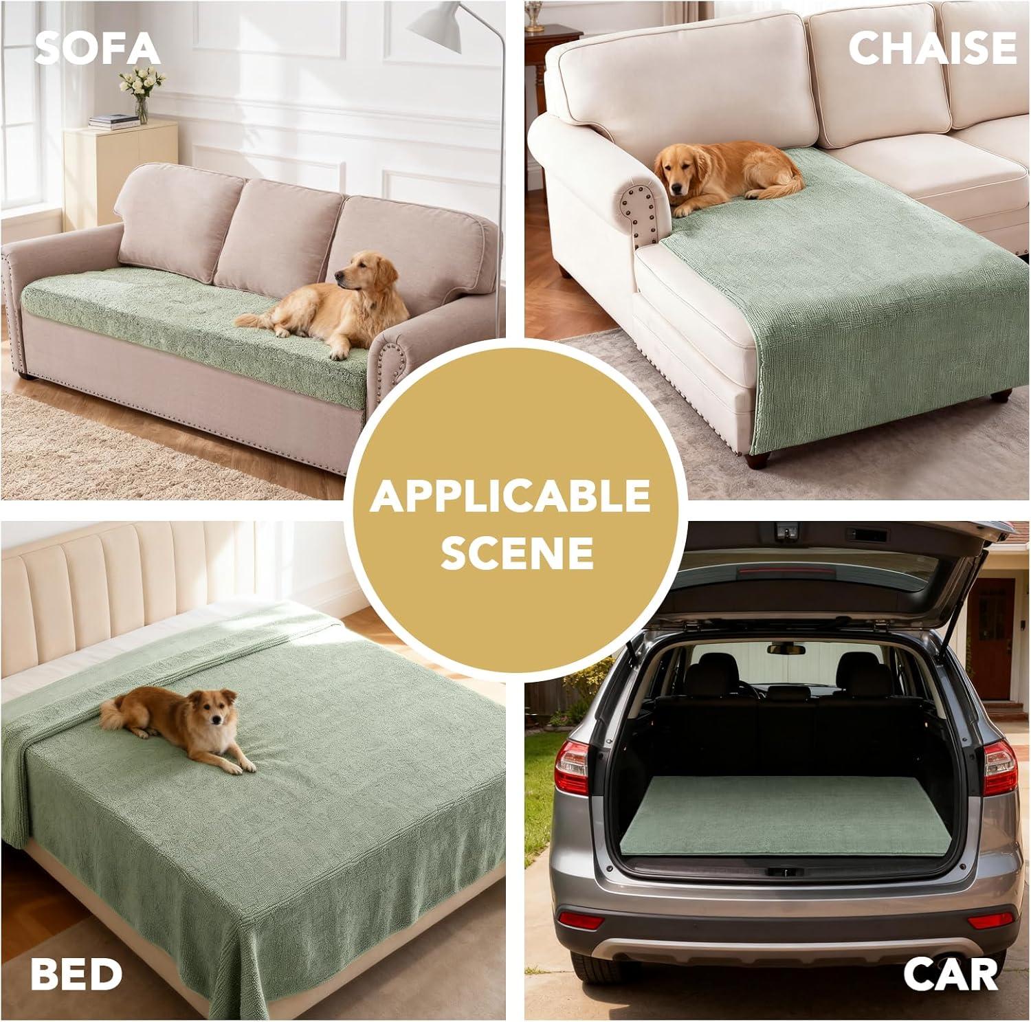 H.VERSAILTEX Non Slip Pet Couch Cover Chenille Dog Bed Protector Thick Soft Sofa Slipcover Pet Friendly Washable Couch Cushion Covers for Pets (68" x 82", Taupe)(Sea Foam)