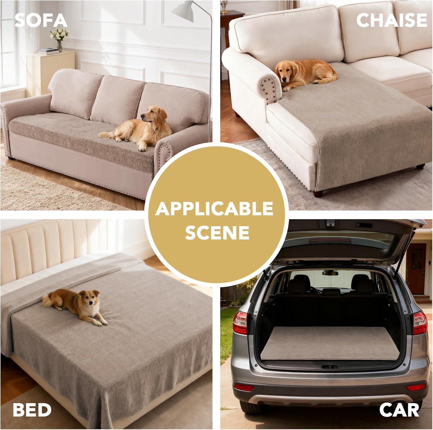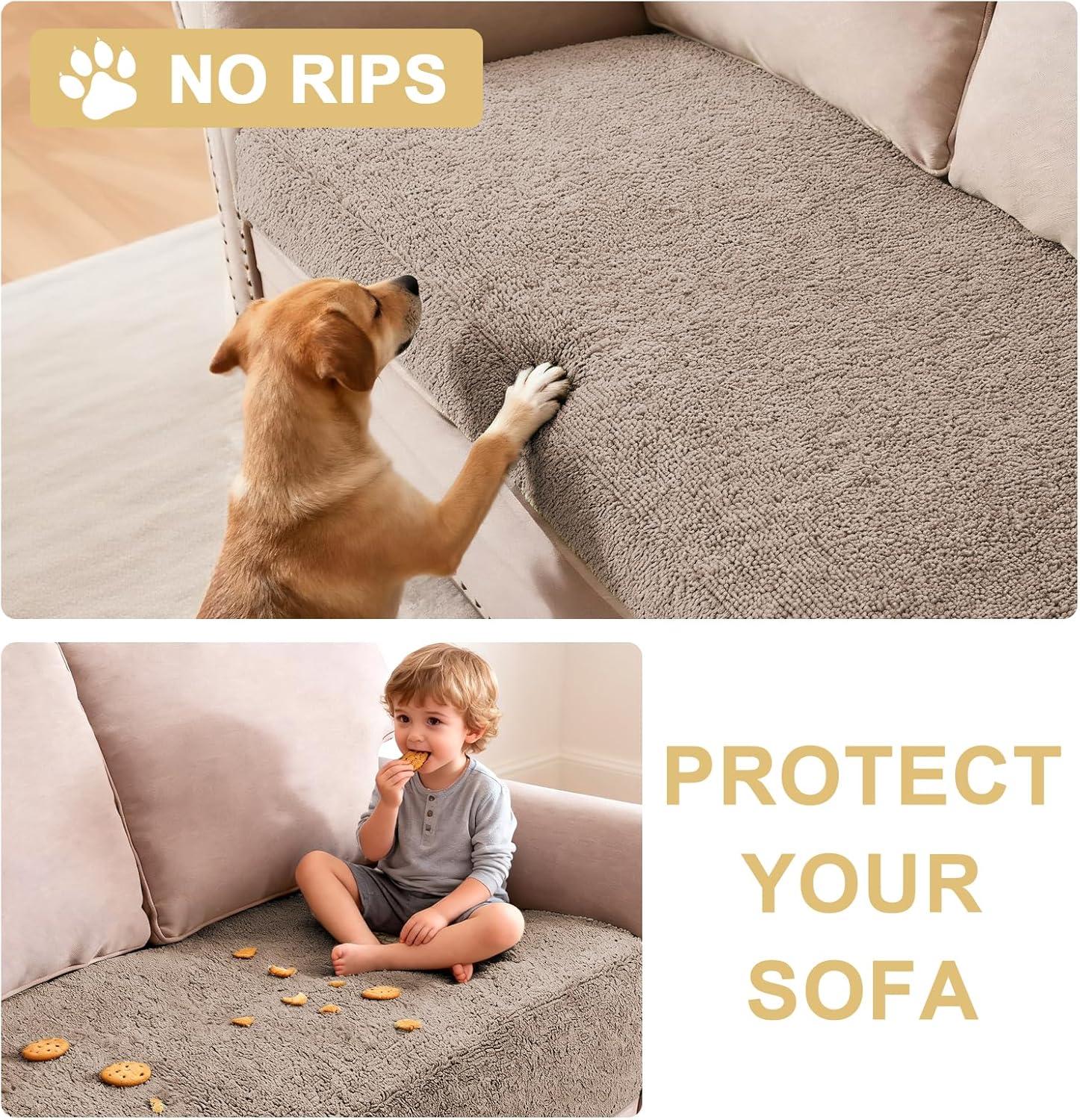 H.VERSAILTEX Non Slip Pet Couch Cover Chenille Dog Bed Protector Thick Soft Sofa Slipcover Pet Friendly Washable Couch Cushion Covers for Pets (68" x 82", Taupe)(Taupe)