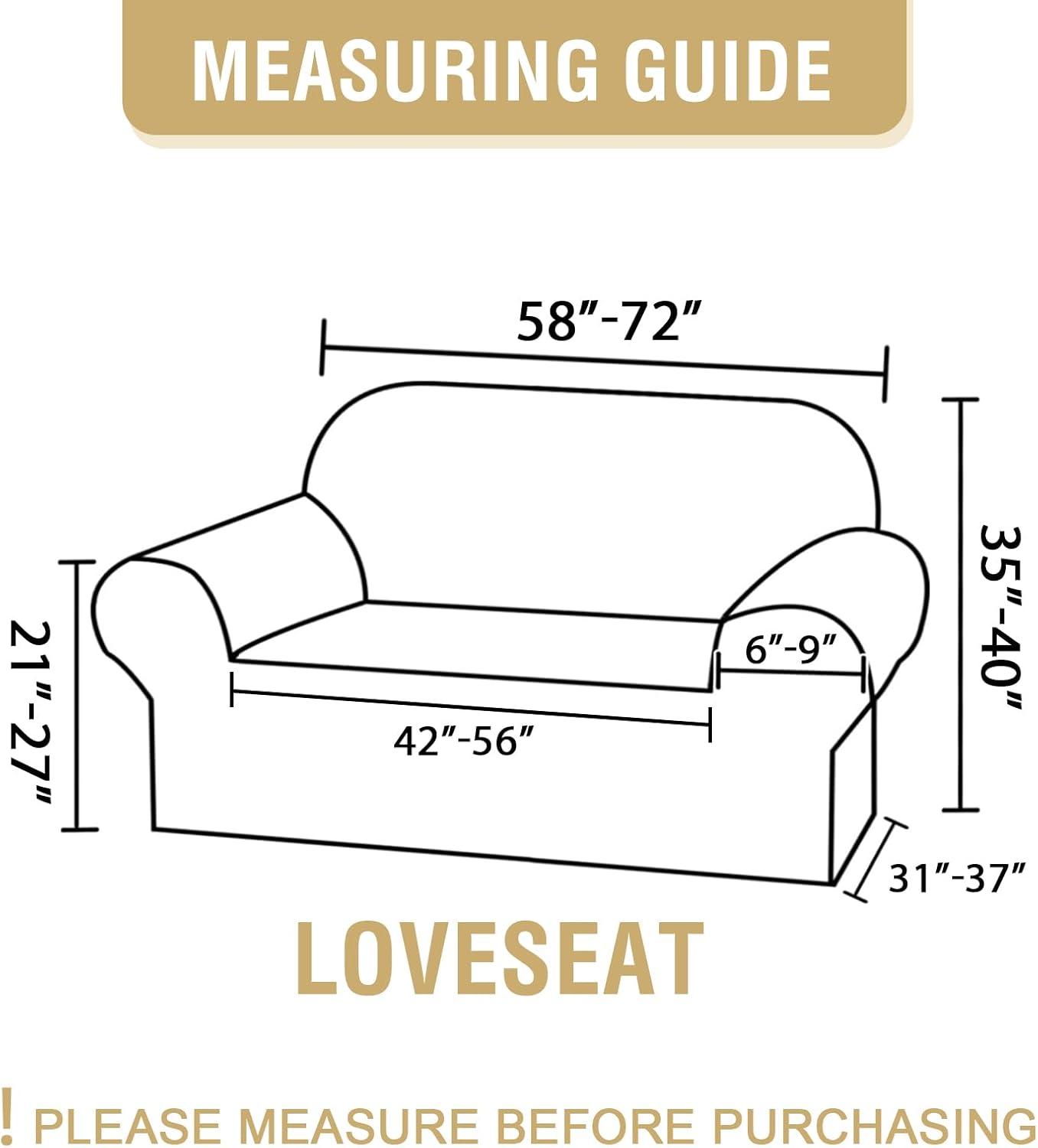 Perfect Fit: H.versailtex stretchable slipcover for couch fit for most types of couches. Armchair fit the size of width from 32 to 48 inch, love seat fit the size of width from 58 to 72 inch, sofa fit the size of width from 72 to 96 inch. Please measure your sofa size before purchasing. Effortless to install on and off (guild photos on selling page), edge constructed with thick elastic bands to cover the bottom edges well for a full protection, hassle free for wrinkle, keep staying in place firmly.Please note that this sofa cover is not suitable for T-shaped cushion, high armrest or special shapes sofa