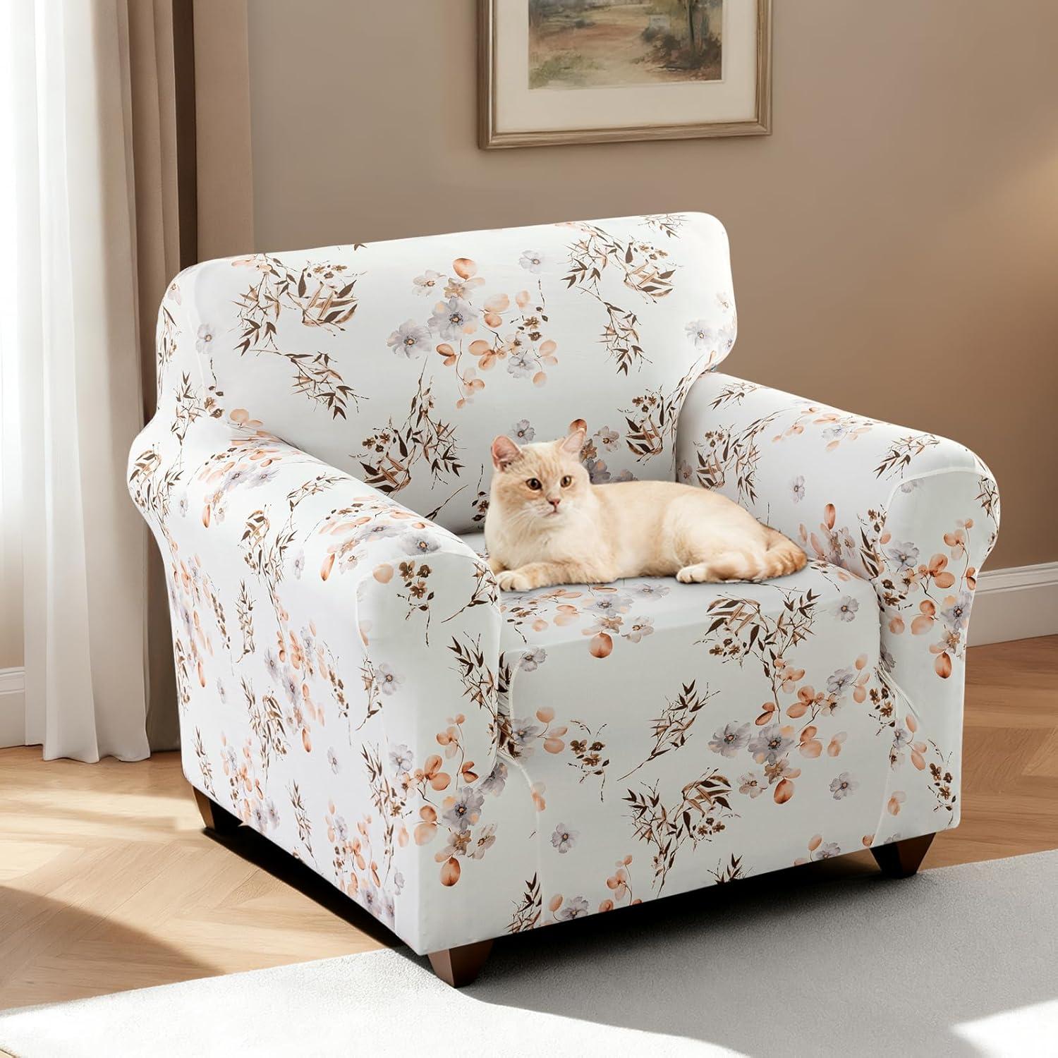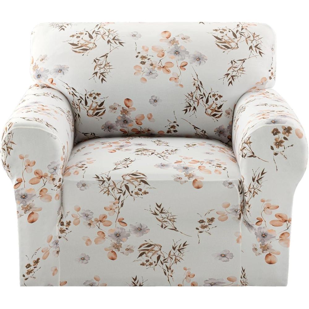 H.VERSAILTEX Printed Chair Covers for Living Room Floral Pattern Sofa Slipcovers Stretch Couch Covers Washable Couch Protector for Dogs(Garden Bliss-Blue,Chair)(Chic Bloomsom)