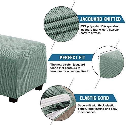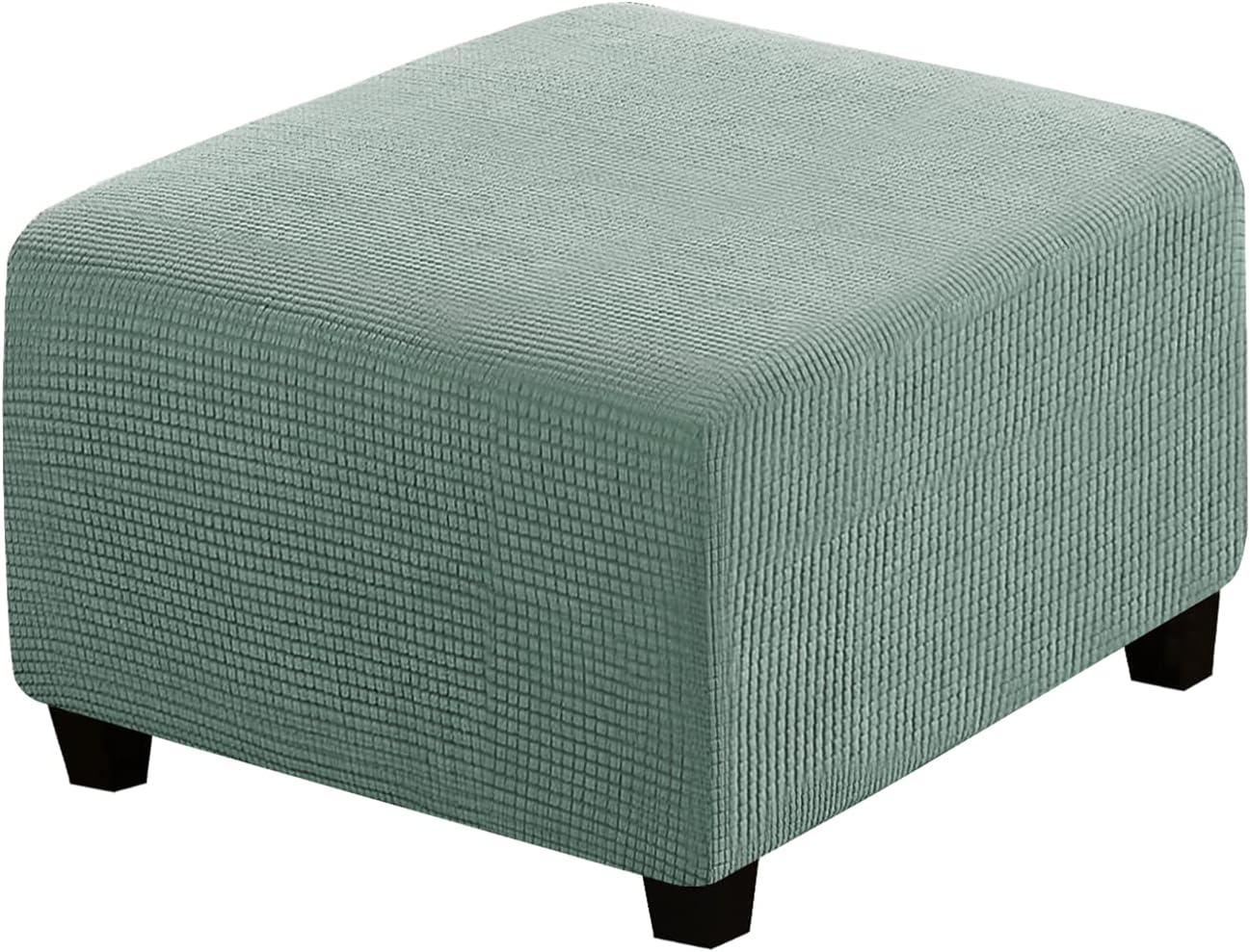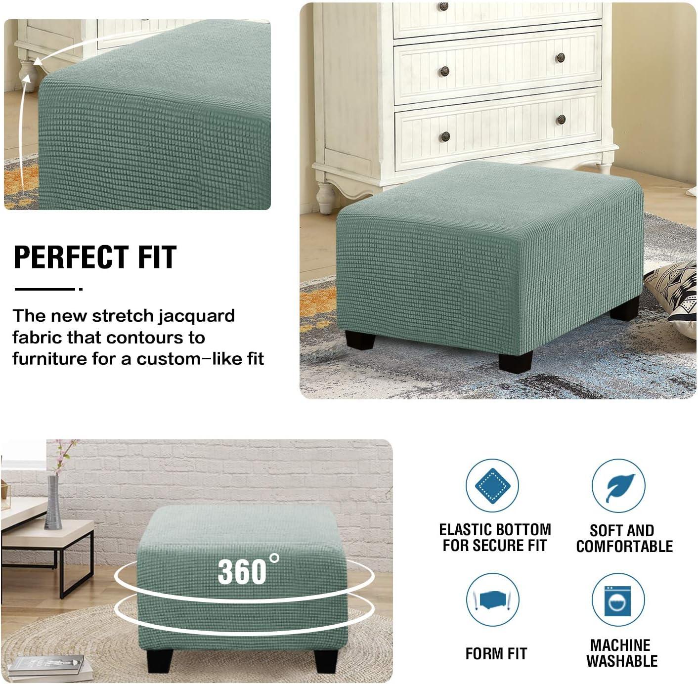 GREAT FIT: This innovated 1 piece ottoman cover is crafted from durable and soft high stretch knitted jacquard fabric. Suitable for most square ottomans. Fit most ottoman with 27”-32″ length, 27”-32″ width, 17”-18″ height. Feature one-size-fits-most, kindly measure before ordering