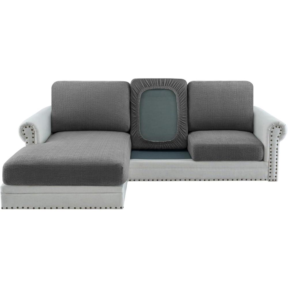 H.VERSAILTEX Super Stretch Individual Jacquard Couch Cushion Covers Furniture Protector Spandex Anti-Slip Soft Thickened Slipcovers Easy Install, (1 PC, Large Back Couch Cover, Ivory)(Grey)