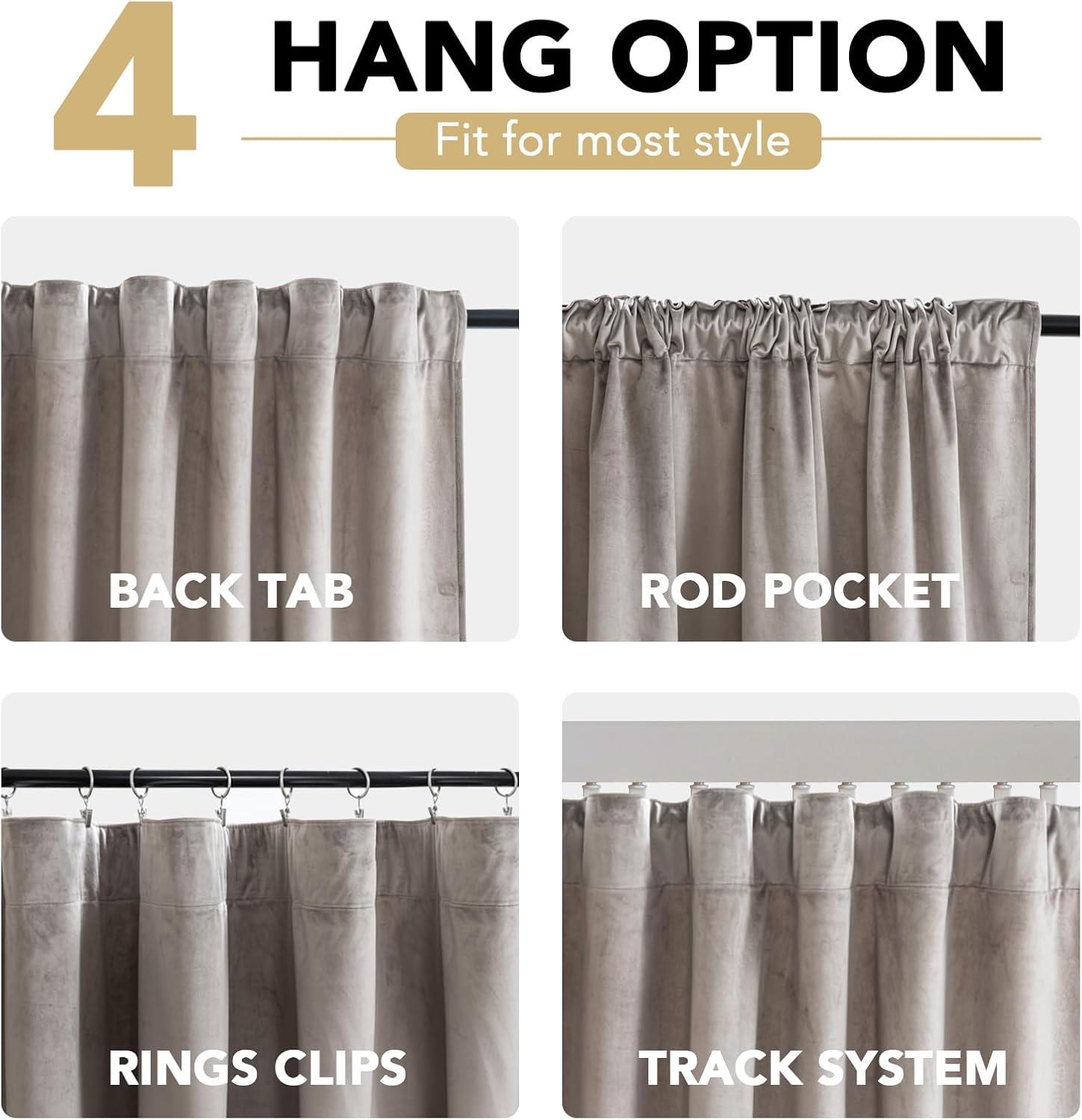 YOU WILL GET:Sold per pair,including 2 Velvet panels – Panel measures: 52″ x 84″|Set measures: 104″ x 84″,with 3 curtain top hanging options (Back tab & Rod pocket & Ring Clips) for your personalized style.