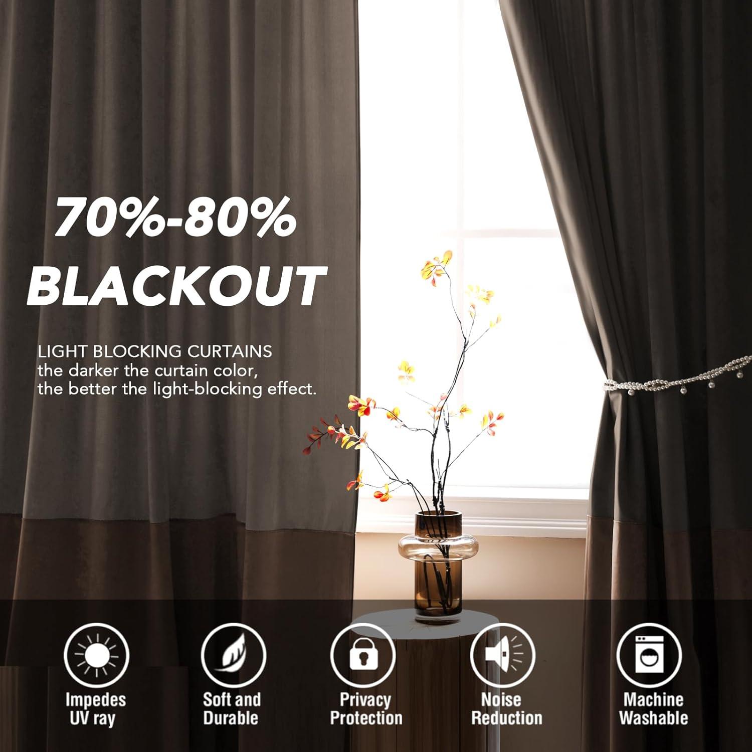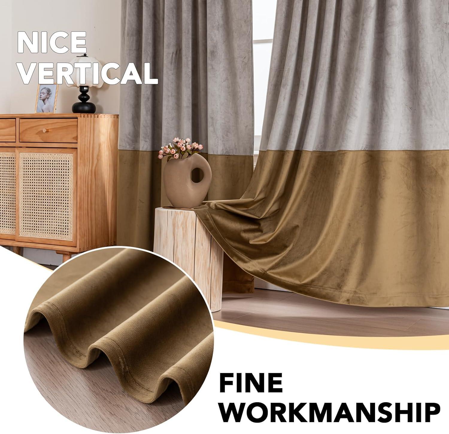 ROOM DARKENING: Transform your space with velvet splicing curtains. They can Block out 70%一80% bright sunlight and UV rays, they create darkness for blissful sleep while guarding furniture against fading. Enjoy uninterrupted privacy and enveloping comfort in luxurious elegance.Primitive and natural effect make the panels more draped and aesthetic, liven up your indoor or outdoor spaces with a sense of airiness and beauty.