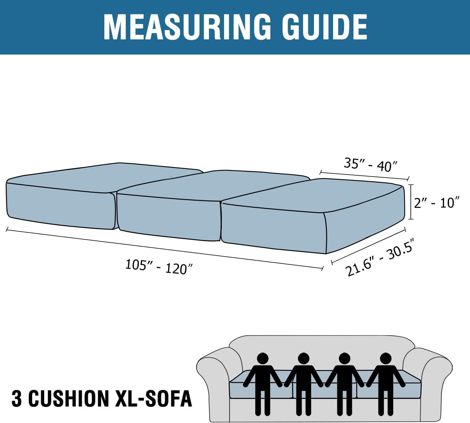 ANY FORM FIT: Each cushion cover measures: 35-40″ length, 21.6-30.5″ width and 2-10″ height. It's crafted from a unique extra stretchy fabric, perfect for regular square cushions, T-cushions and also L-cushions, used to cover not only the seat cushions of your sofa, but also the back cushions as long as they can be separated from the sofa