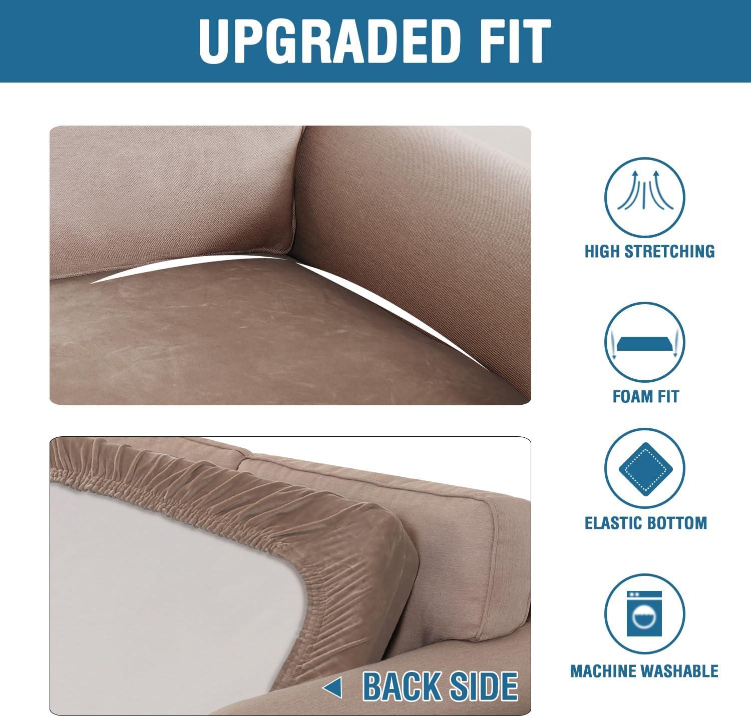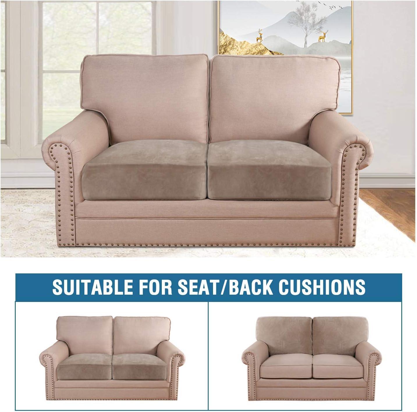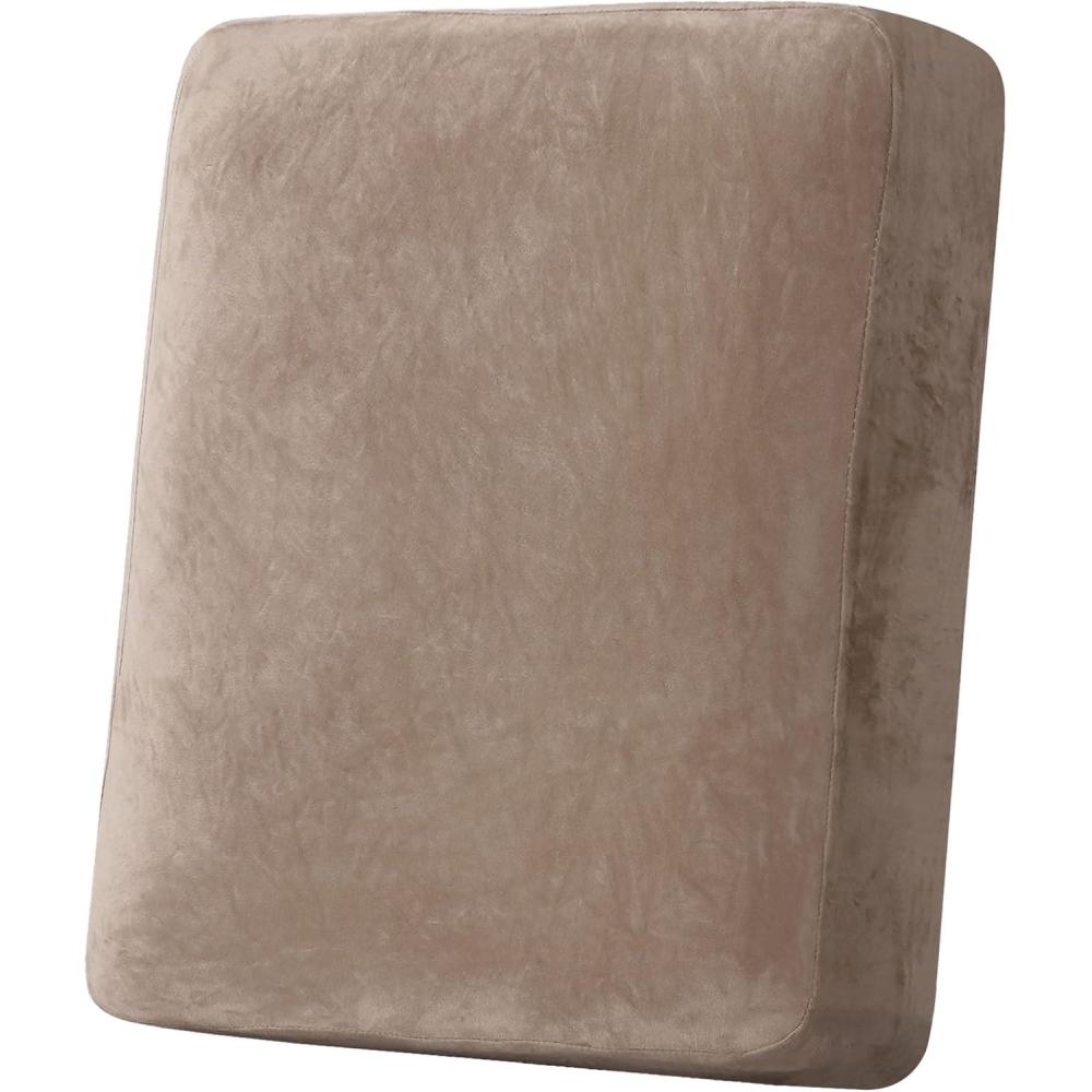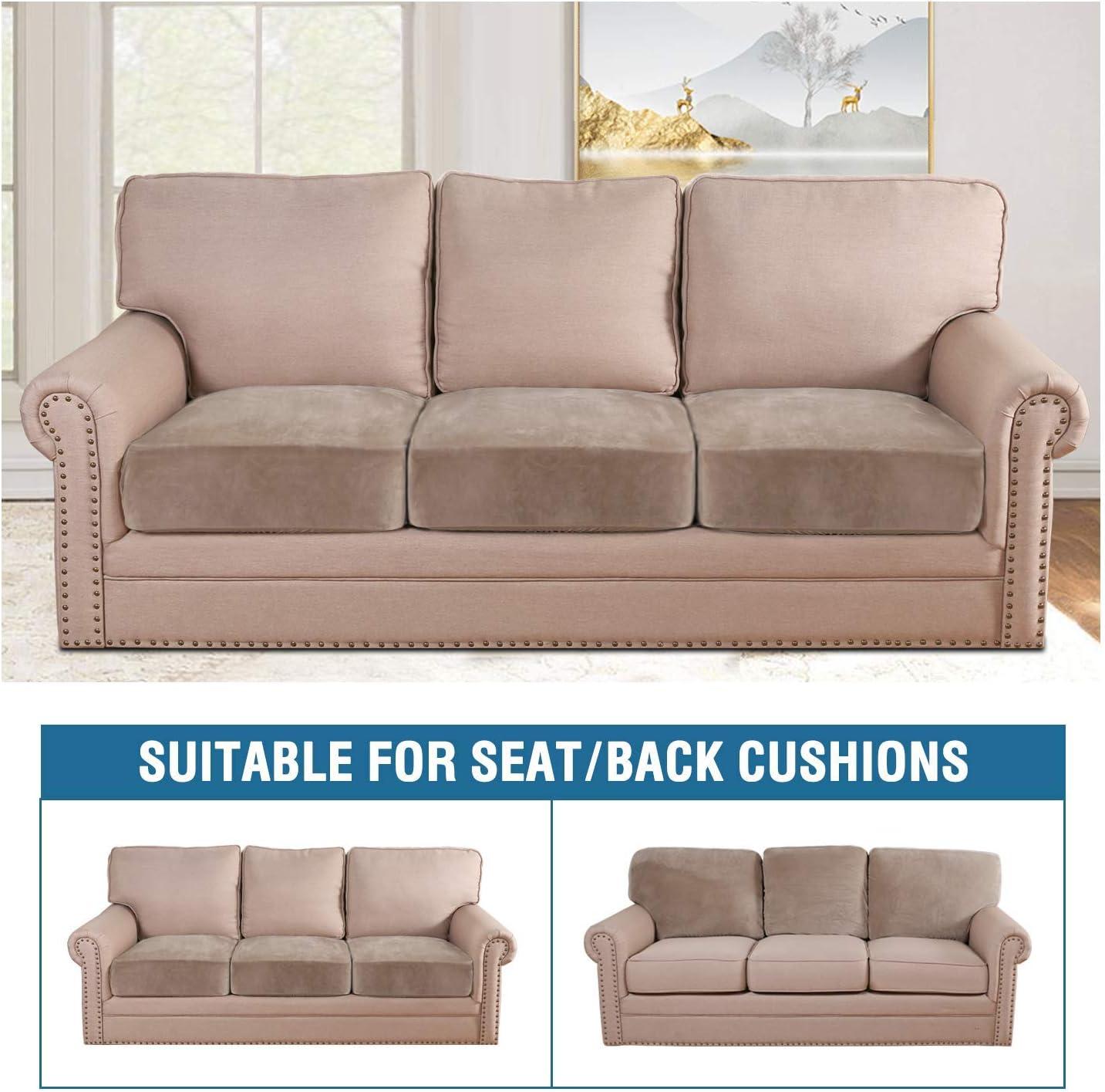 H.VERSAILTEX Velvet Stretch Couch Cushion Cover Plush Cushion Slipcover for Chair Loveseat Sofa Cushion Furniture Protector Seat Cushion Sofa Cover (3 Piece XL Sofa Cushion Covers, Taupe)(Taupe)