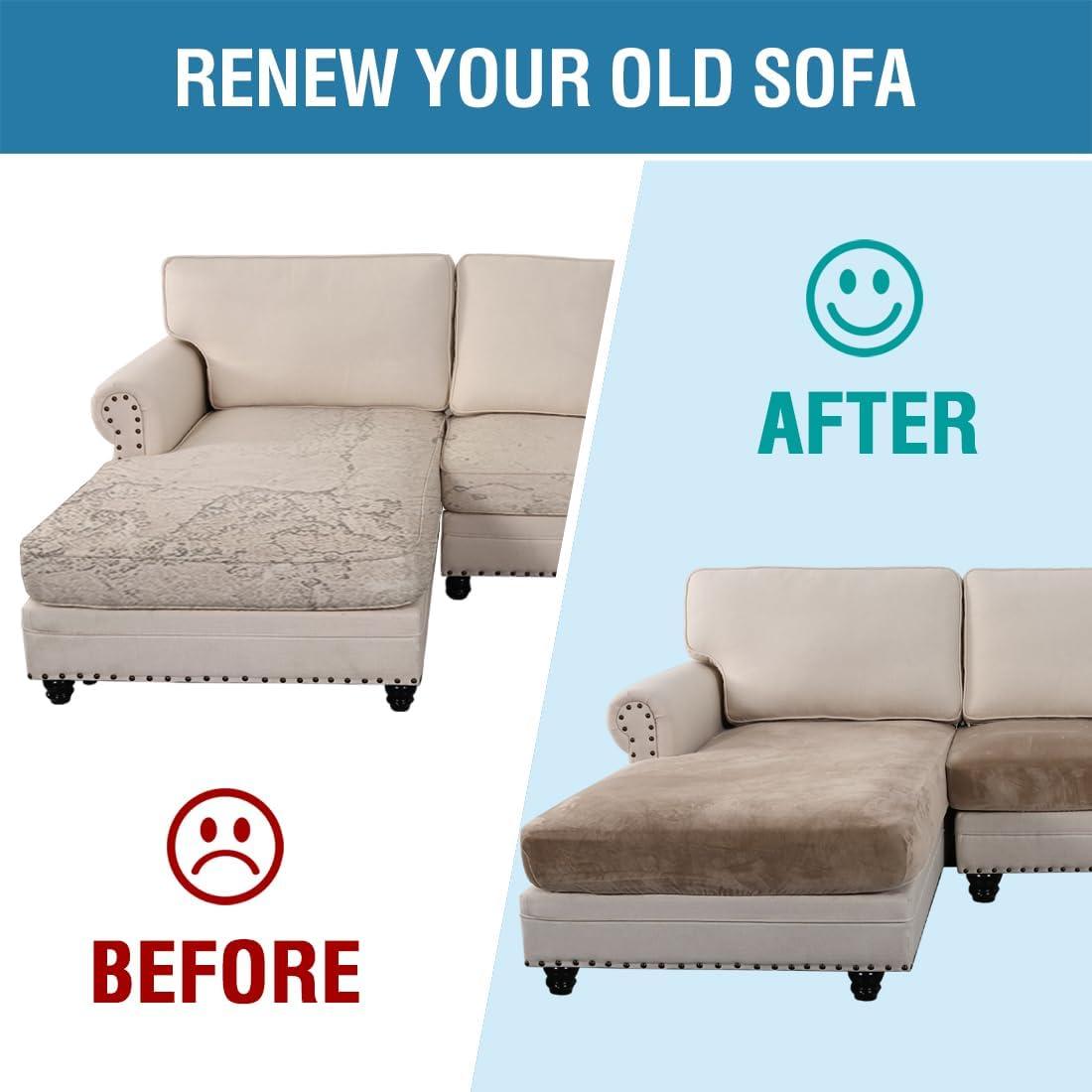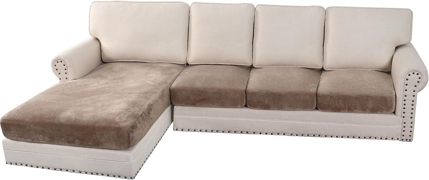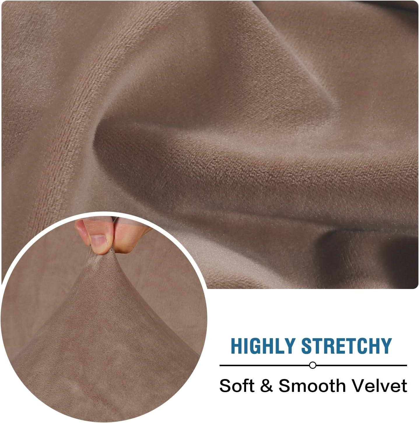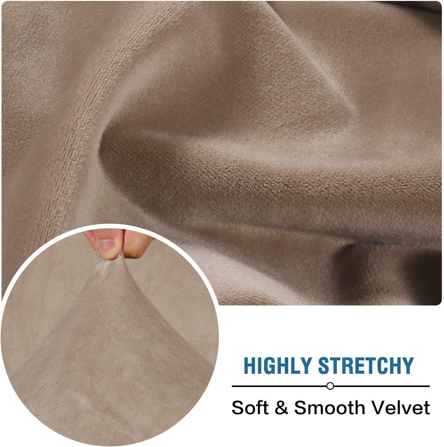 H.VERSAILTEX Velvet Stretch Couch Cushion Cover Plush Cushion Slipcover for Chair Loveseat Sofa Cushion Furniture Protector Seat Cushion Sofa Cover (3 Piece XL Sofa Cushion Covers, Taupe)(Taupe)