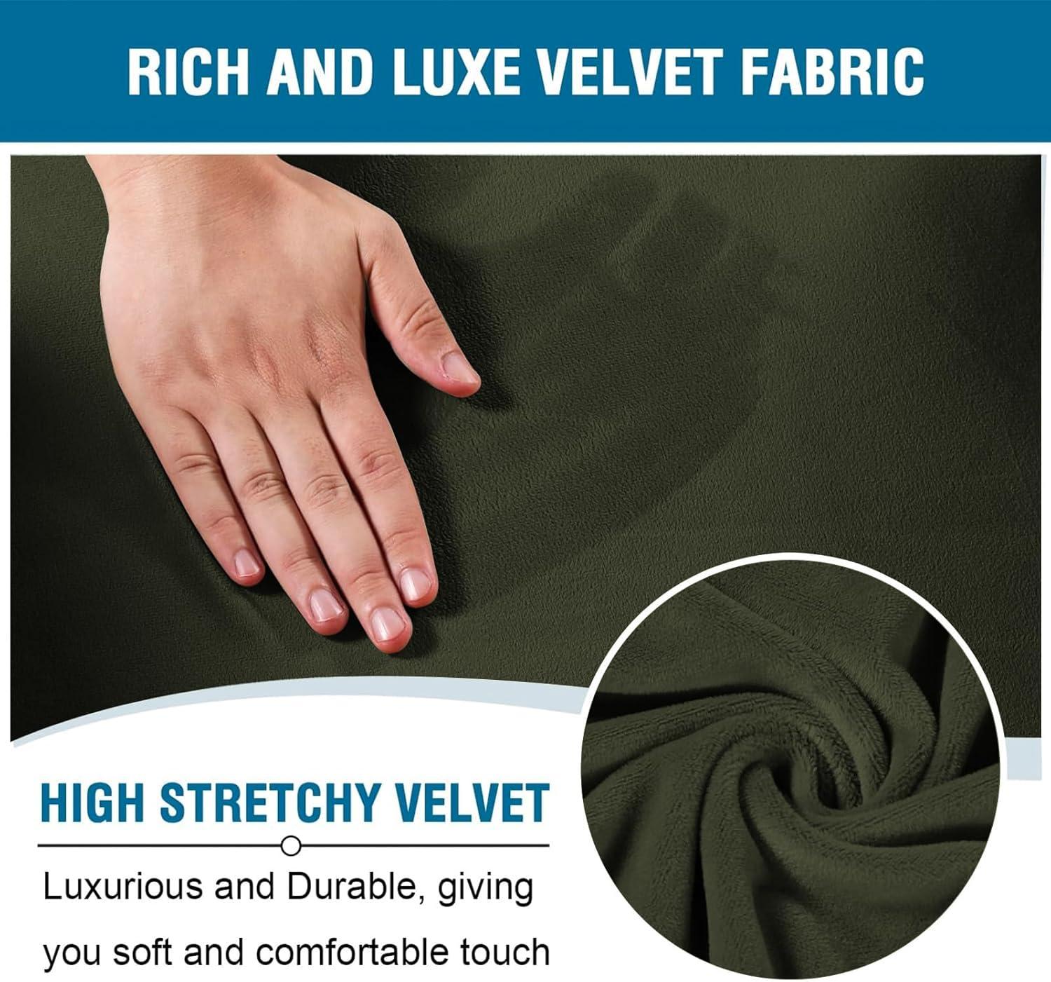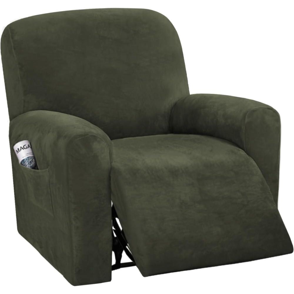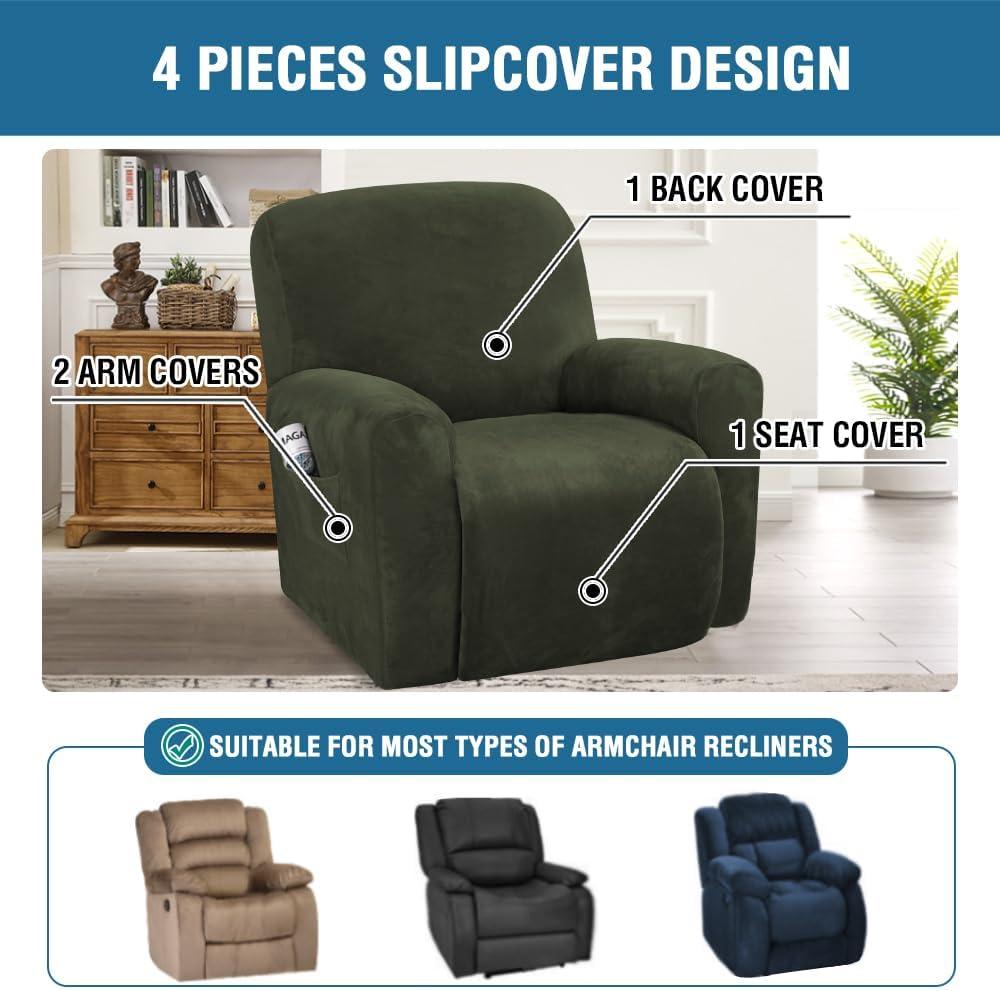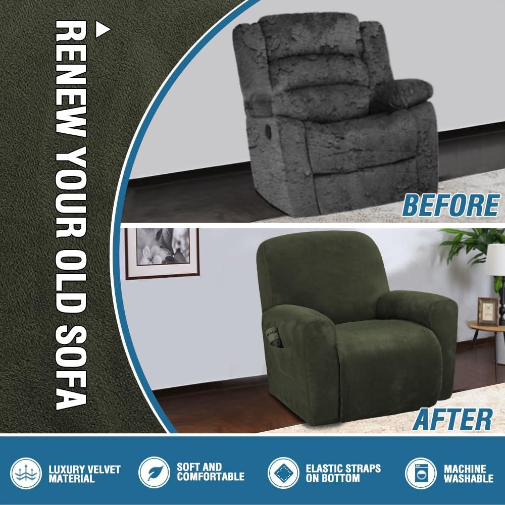 H.VERSAILTEX Velvet Stretch Recliner Couch Covers 4-Pieces Style Recliner Chair Covers Recliner Cover for Reclining Chair Slipcovers Feature Non Slip Form Fitted Thick Soft Washable, French Oak(Olive)