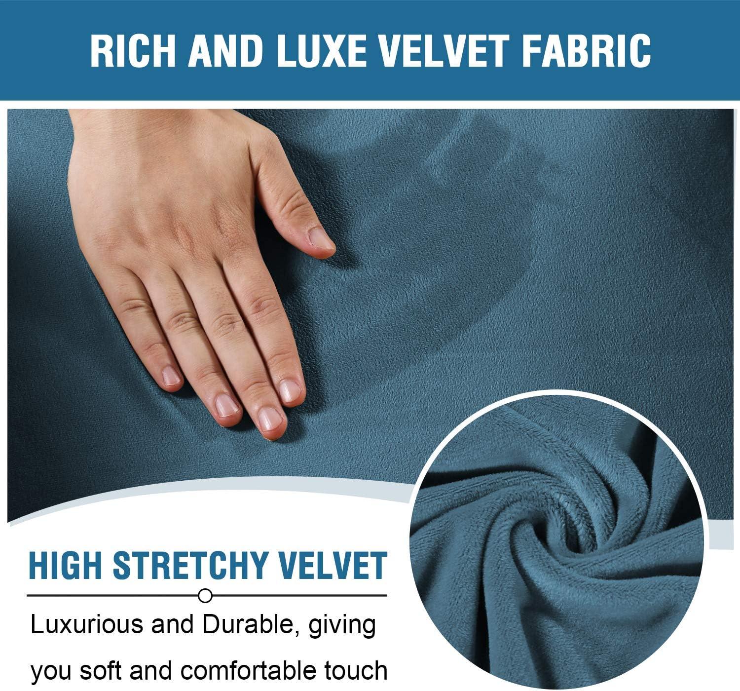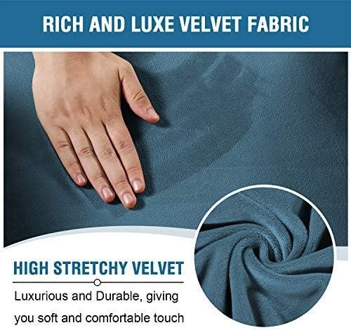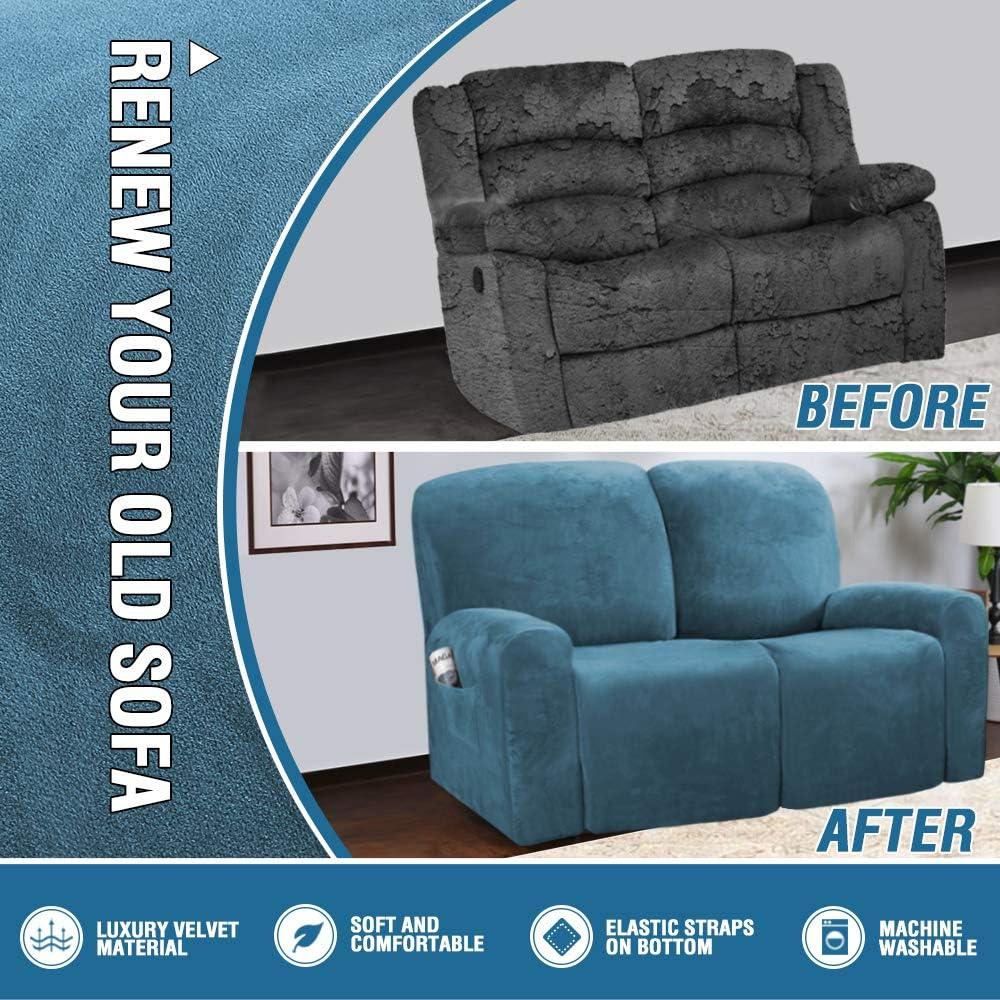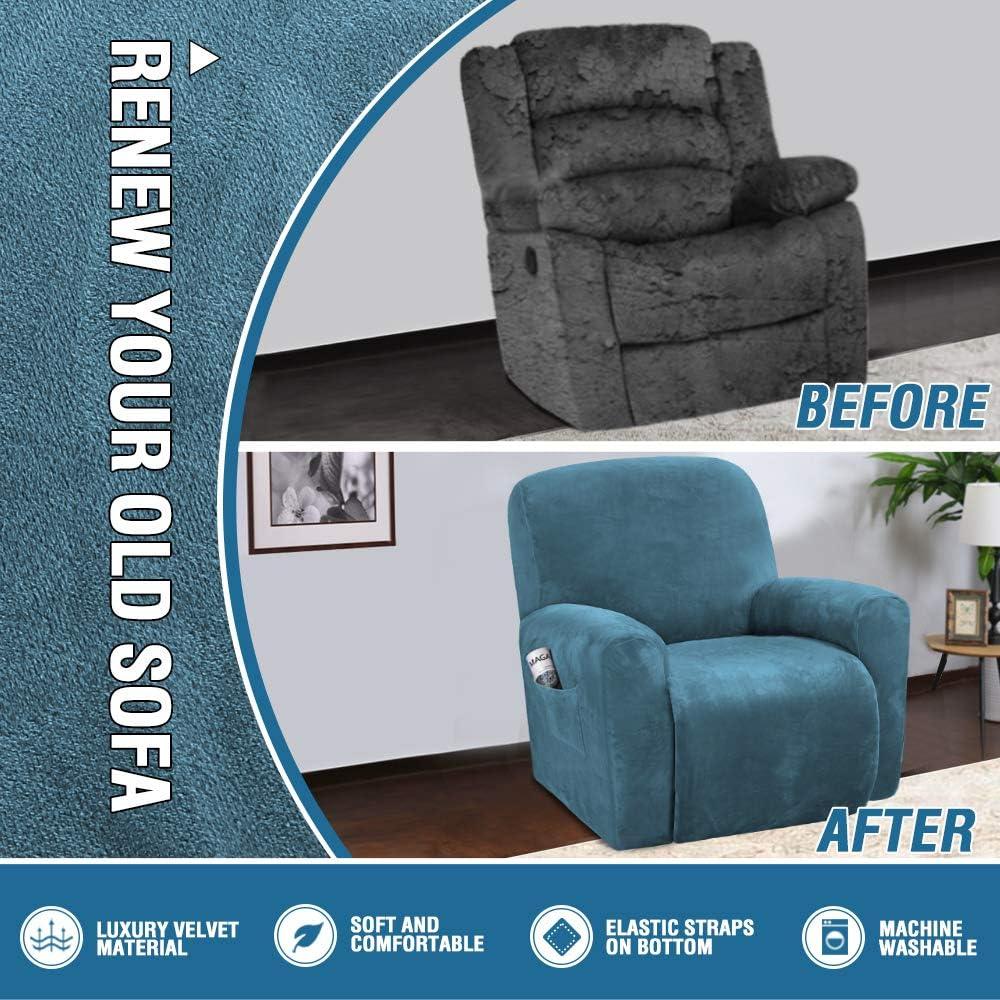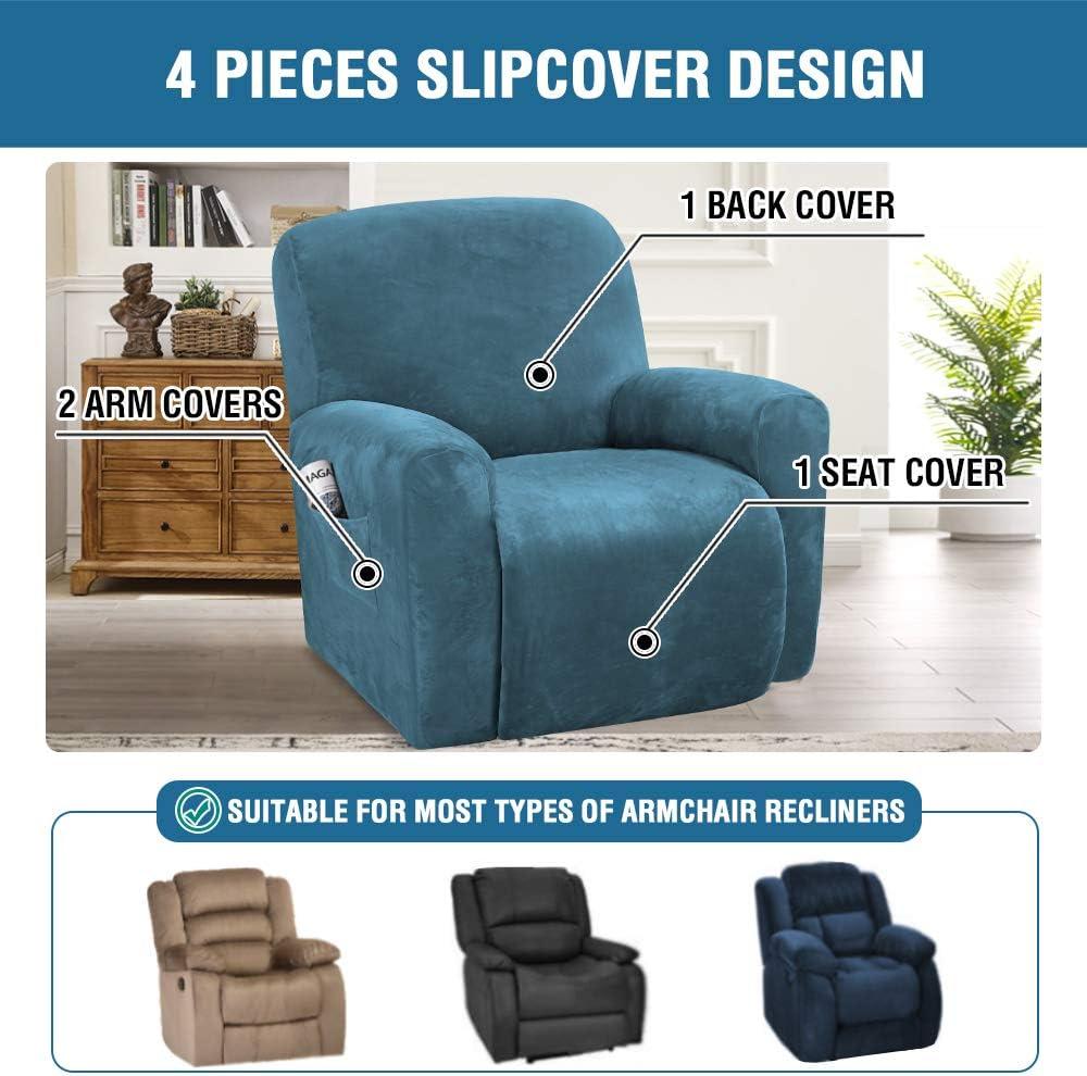 H.VERSAILTEX Velvet Stretch Recliner Couch Covers 4-Pieces Style Recliner Chair Covers Recliner Cover for Reclining Chair Slipcovers Feature Non Slip Form Fitted Thick Soft Washable, French Oak(Peacock Blue)