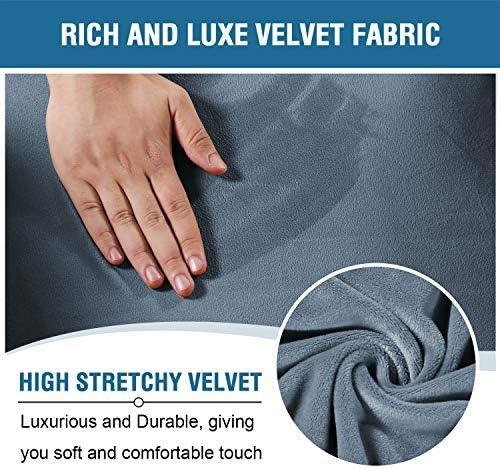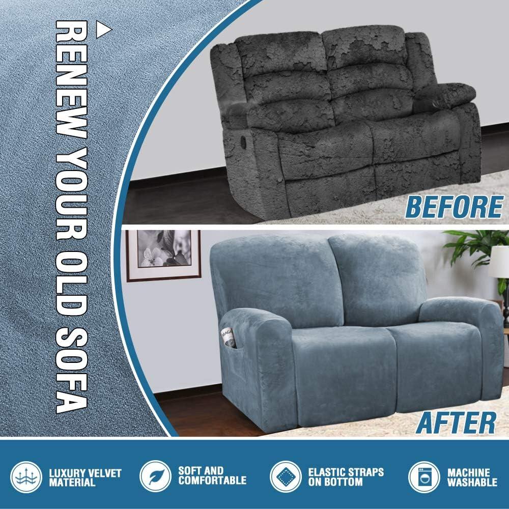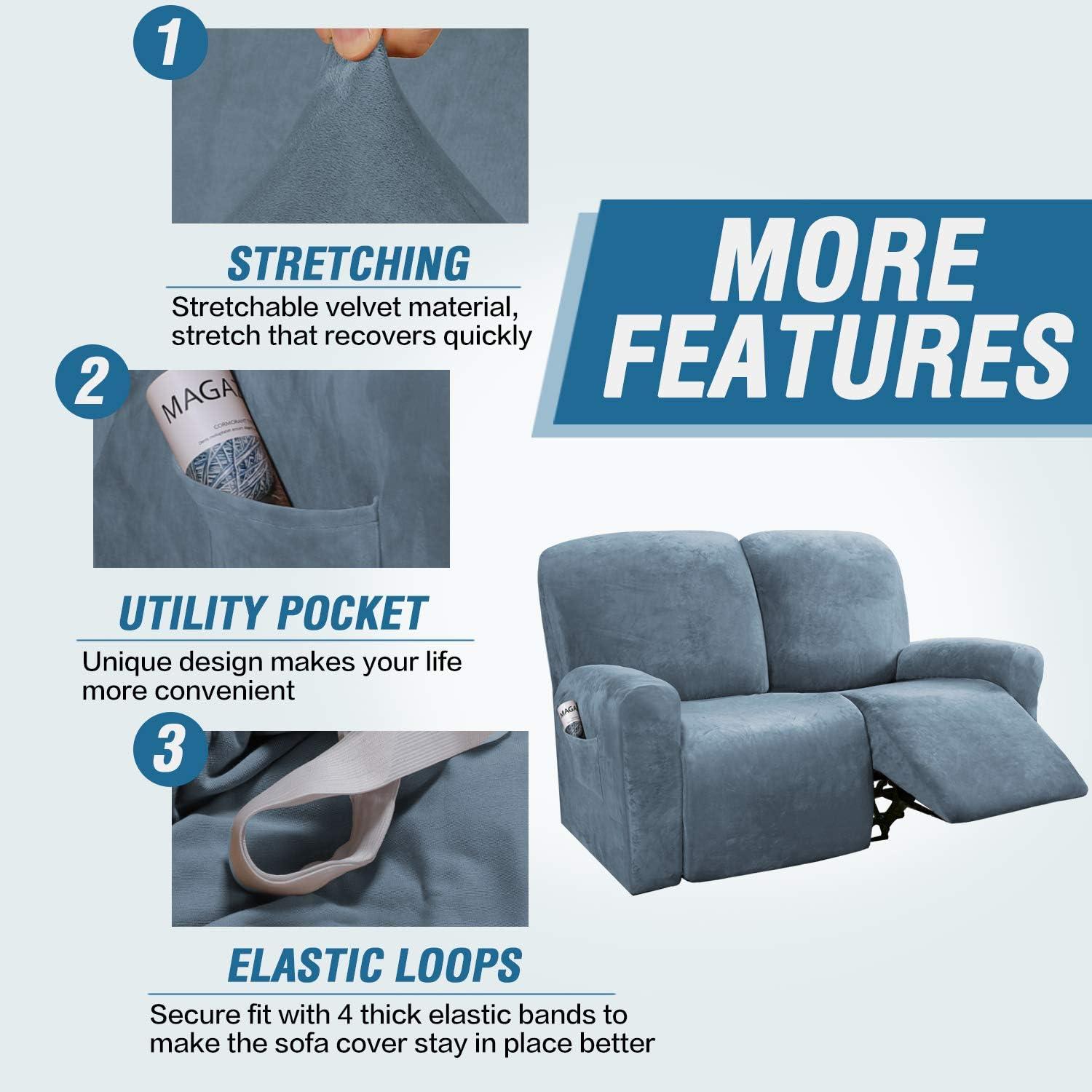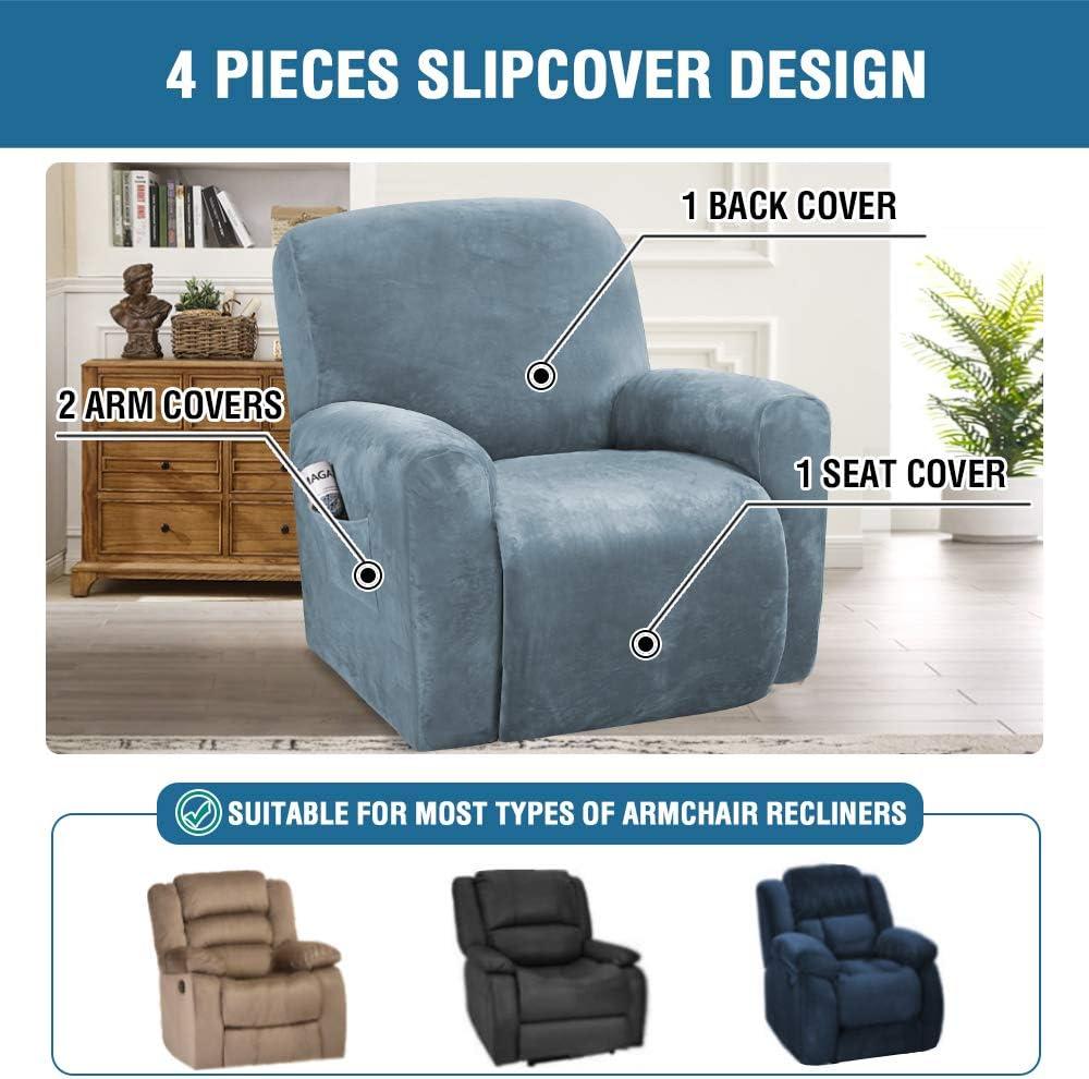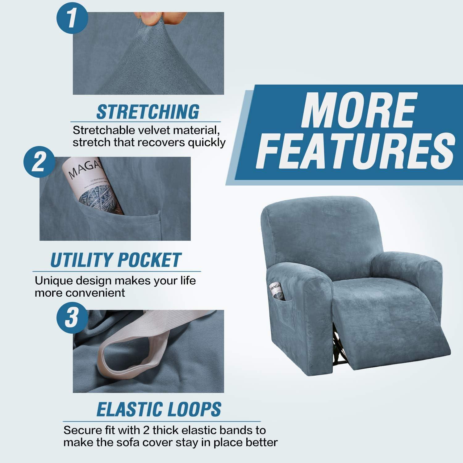 H.VERSAILTEX Velvet Stretch Recliner Couch Covers 4-Pieces Style Recliner Chair Covers Recliner Cover for Reclining Chair Slipcovers Feature Non Slip Form Fitted Thick Soft Washable, French Oak(Stone Blue)