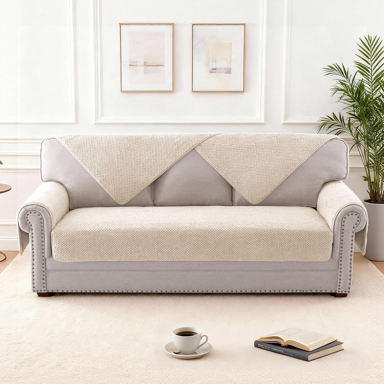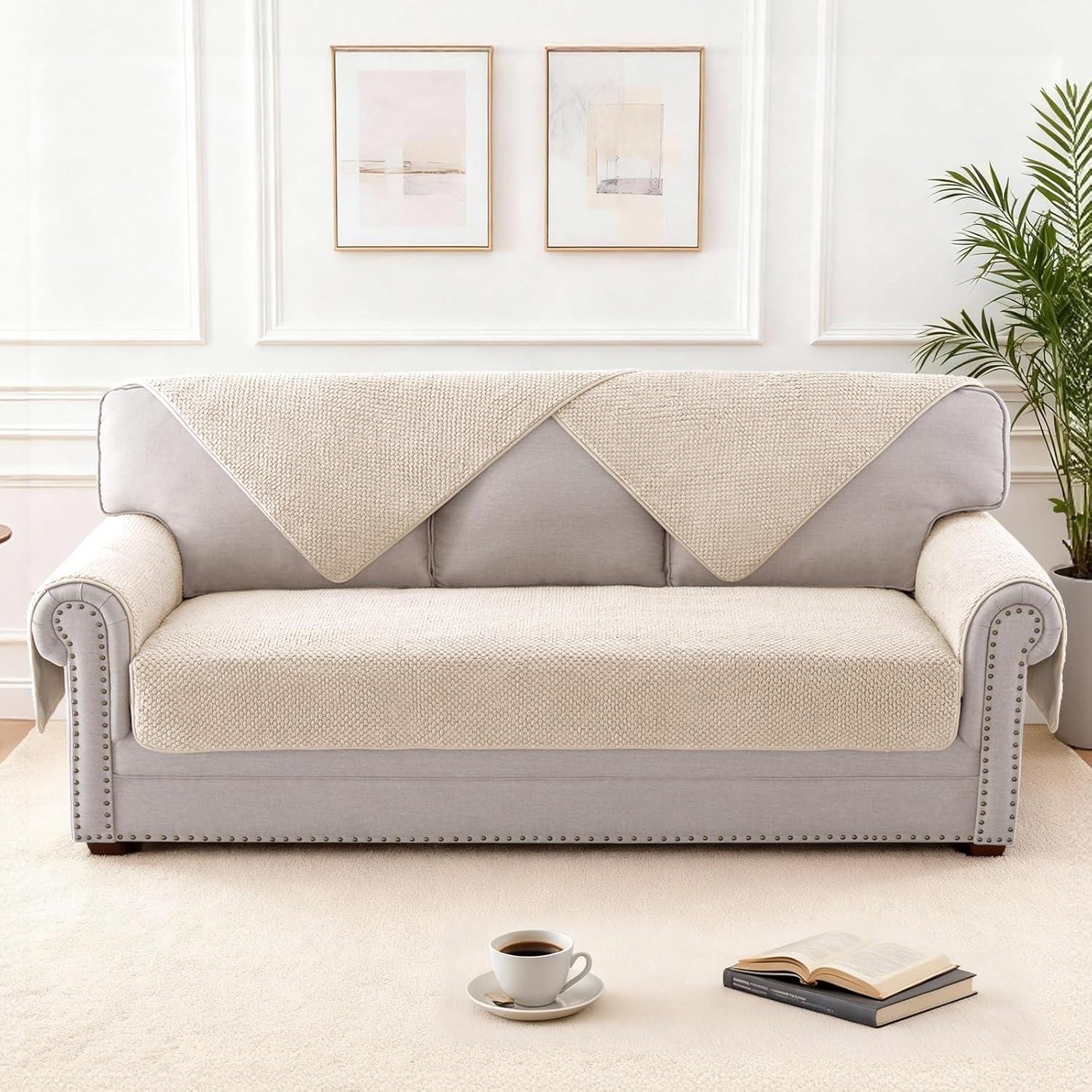NON SLIP COUCH COVER:The back of the couch protector features anti-slip silicone particles,And it has more straps than normal sofa cushions,providing better stability,make the sofa cushion not easy to move me,while providing stability for active households with pets/kids.