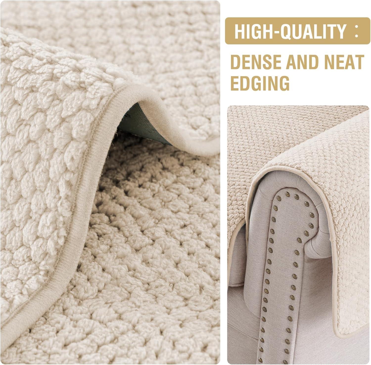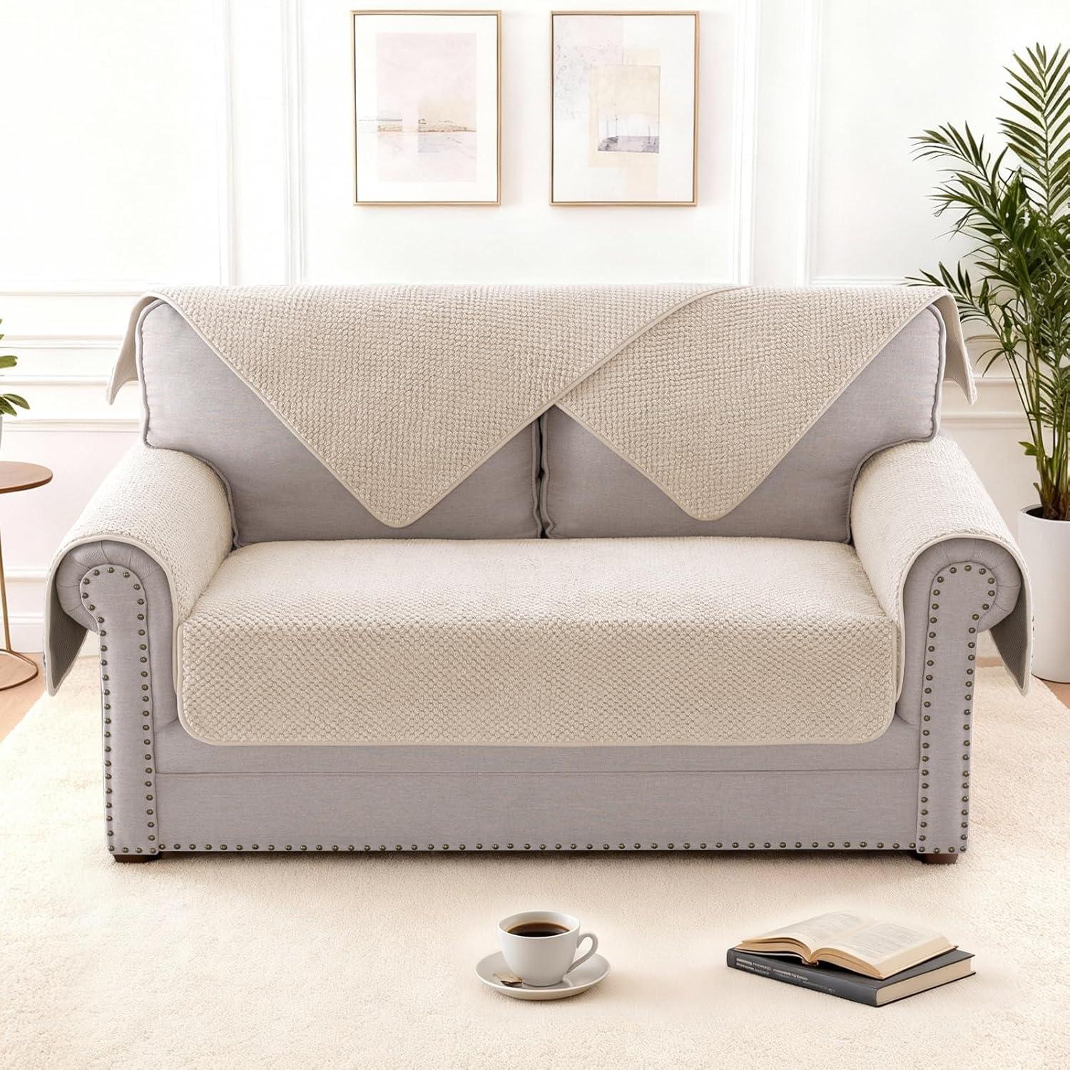 PLUSH COUCH COVER:The couch cover is Crafted with premium fabric featuring dense velvety fibers that deliver cloud-like softness,which ensures breathable,skin friendly and Pet-Friendly. The materials for thermal insulation, offering exceptional warmth during autumn/winter while resisting pilling even with prolonged use.Enjoy the perfect blend of style and functionality, making every moment at home truly enjoyable!