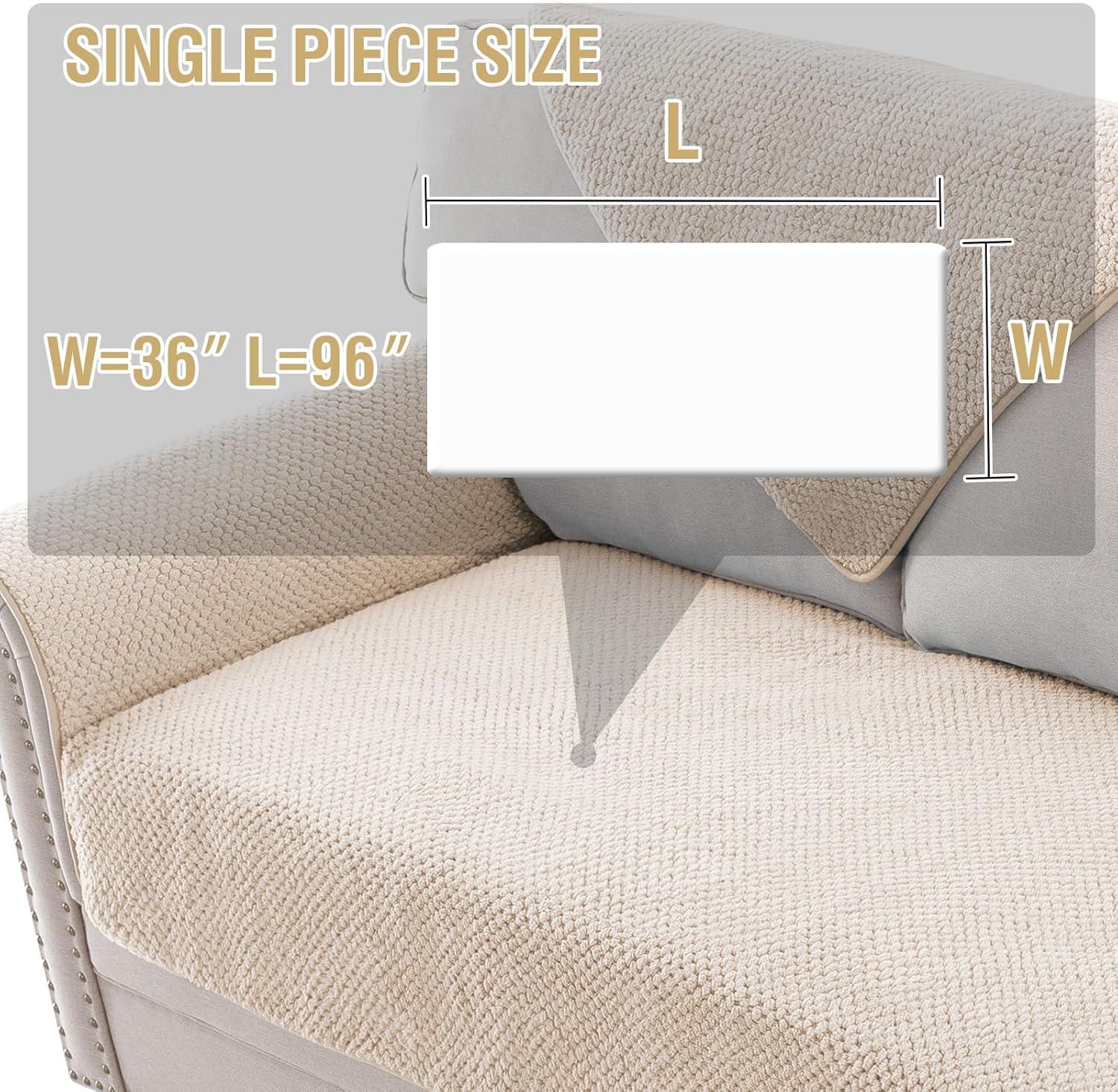 UNIVERSAL FIT COUCH COVER:The Sofa Covers measuring 36″ x 96″!Sold per PIECE! Designed to complement American-style furniture, this item is an ideal choice for sofas and beds. But that's not all! It also fits wonderfully in 4 Cushion Sofa,Chaise,L Shaped Recliner,cars, window seats, baby play mats, bedroom carpets,and even dog cages.NOTE:Please Measure Before Purchasing.