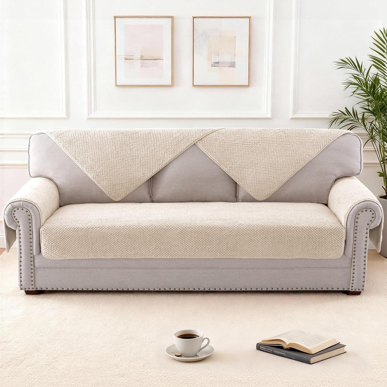 WATERPROOF COUCH PROTECTOR:Our Sofa Slipcovers , the perfect solution for families with kids and pets! Advanced breathable membrane layer blocks liquid penetration without compromising fabric softness. Designed to safeguard your furniture from spills, stains, and scratches from your pets and family,it ensures your home remains stylish while providing ultimate comfort for everyone.